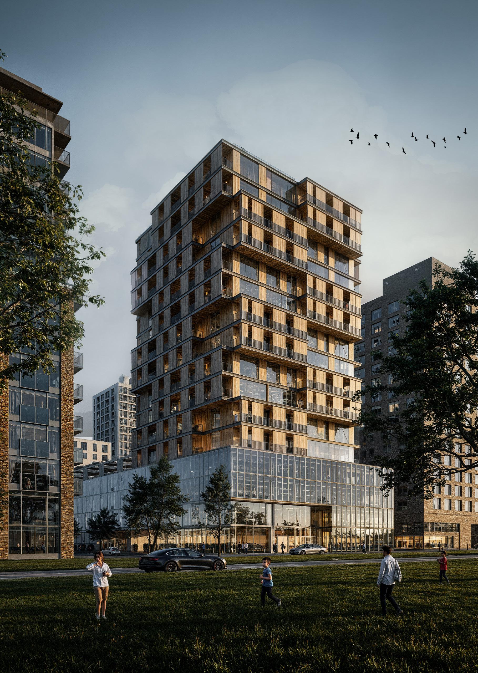The tower design introduces balconies to every apartment, carefully arranged to preserve privacy while avoiding direct adjacency between neighboring units. The configuration maintains a sense of human scale by limiting continuous wall height to two storeys, creating a façade that reads as a staggered composition rather than a monolithic surface. The final arrangement emerged through a series of trials and adjustments, balancing individual resident needs with the coherence of the overall architectural expression.