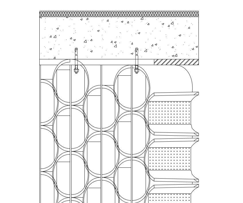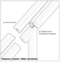 T-shaped Steel Bar welded to 45mm steel base plate and bolted to precast concrete slab and reinforced concrete framed
