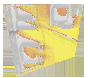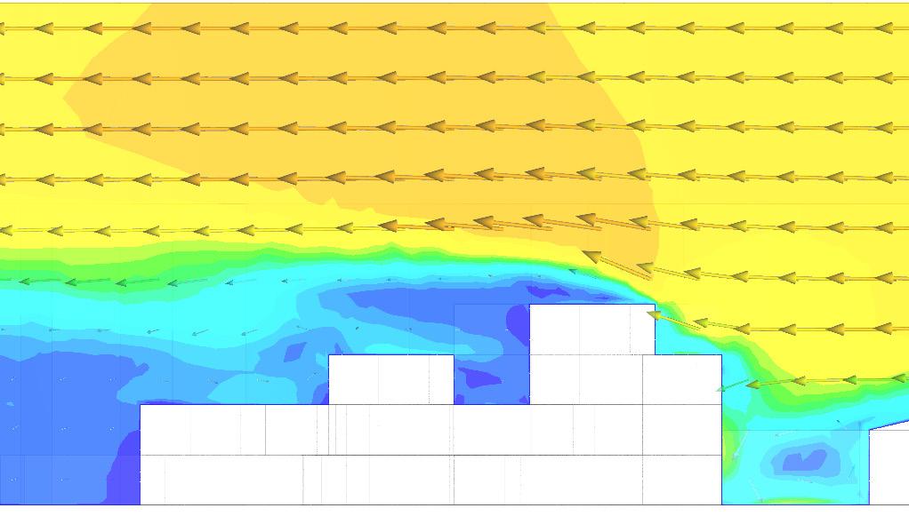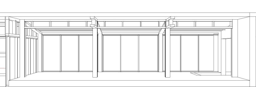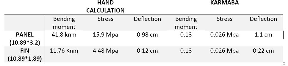 In our Karamba structural analysis, the large-span fin with two half panels showed far greater deflection than our manual calculations suggested, mainly because the shear walls that normally take most of the wind load were not yet included in the model.