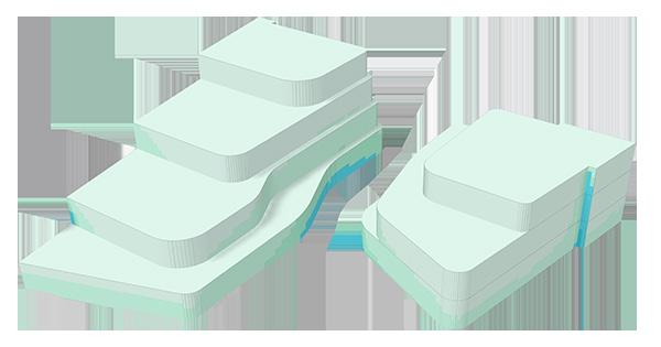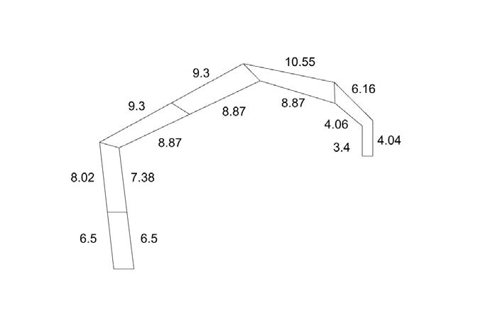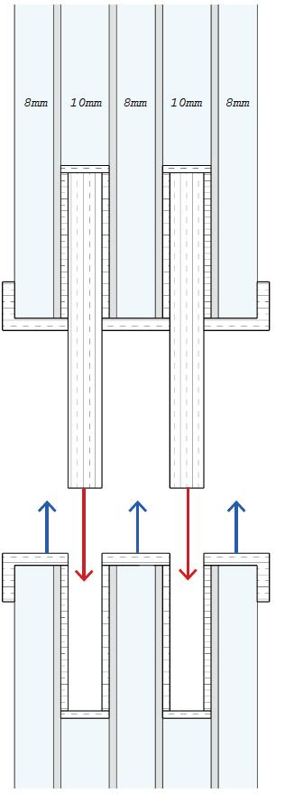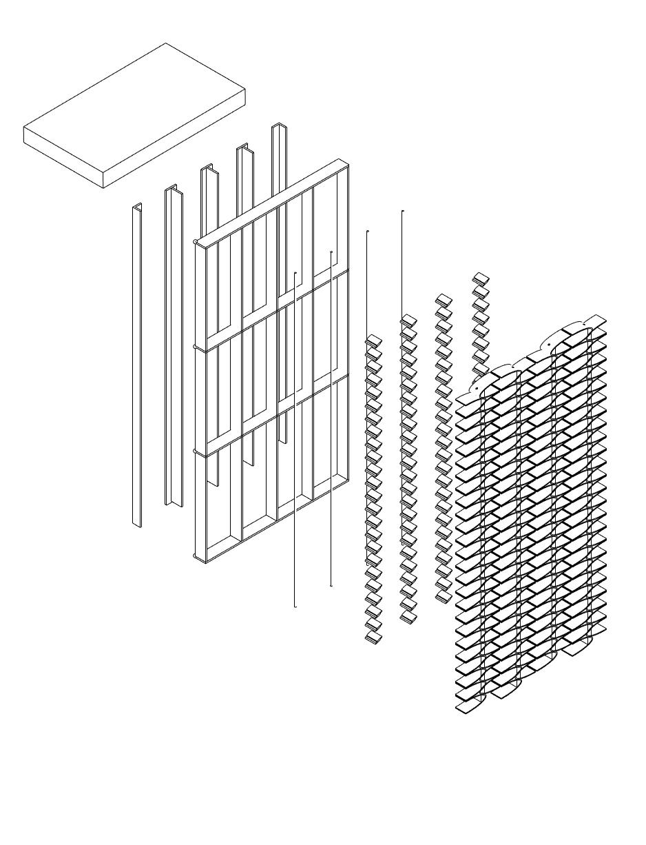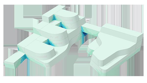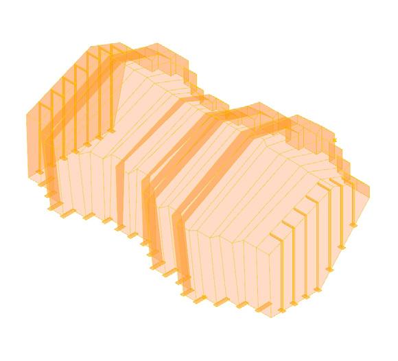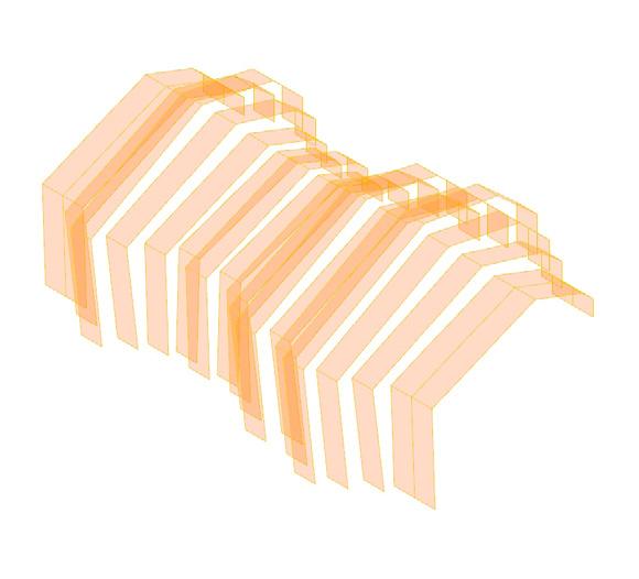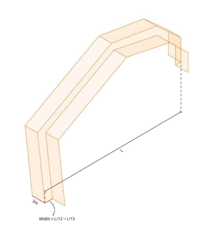 In order to determine the structural form, these components can be algorithmically rationalised in terms of their dimensions. According to the rule of thumbs for initial sizing of structural glass elements, the depth of the fins is between L/12 - L/15. Therefore, five different sizes of fins were derived starting from the largest span and arranged in combinations.