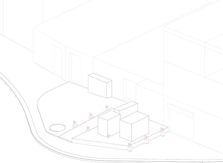 Within the constraints of the limited site, the building is carefully organized into three primary functions: commercial spaces, residential apartments, and parking facilities. The commercial program is concentrated along the street frontage, activating the ground level and creating a lively edge for pedestrians. Residential units are positioned above, benefitting from privacy and natural light, while maintaining a strong connection to the urban context. The parking area, strategically set back from the street, ensures that it does not dominate the public realm, thereby allowing the ground floor to remain open, vibrant, and socially engaging.