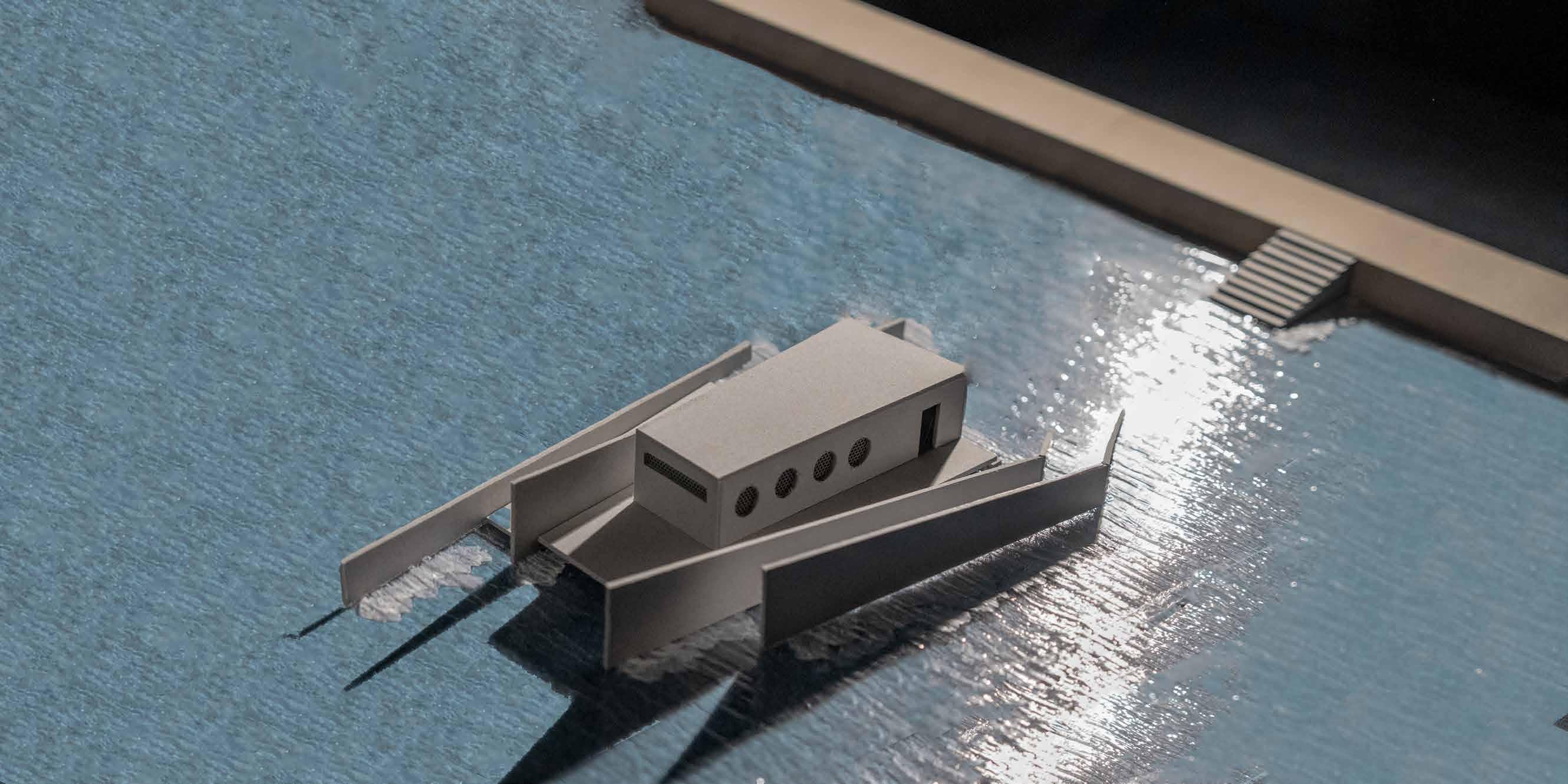 My site is located at Nanliao Fishing Port in Hsinchu. There are a lot of fishing boats docked there. I want my design to look like a boat floating on the sea when the tide is at high level.