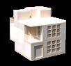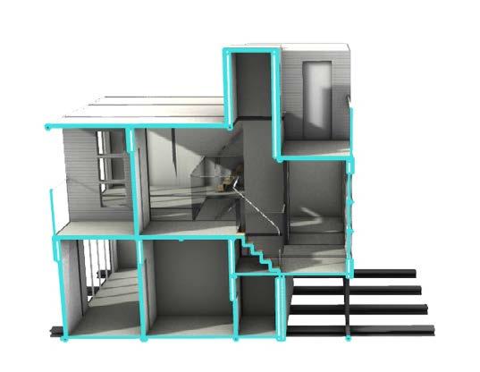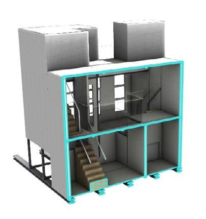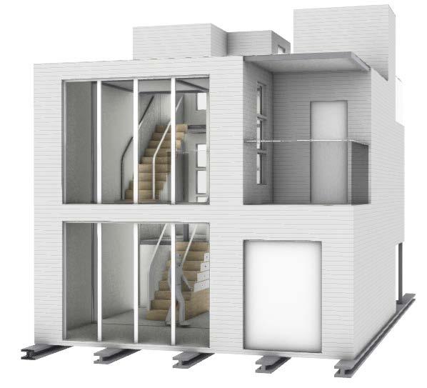 3D PRINTED SEGMENT OF THE BUILDING SHOWING PRIMARY STRUCTURE (BEAMS AND COLUMNS) AND MODULES.