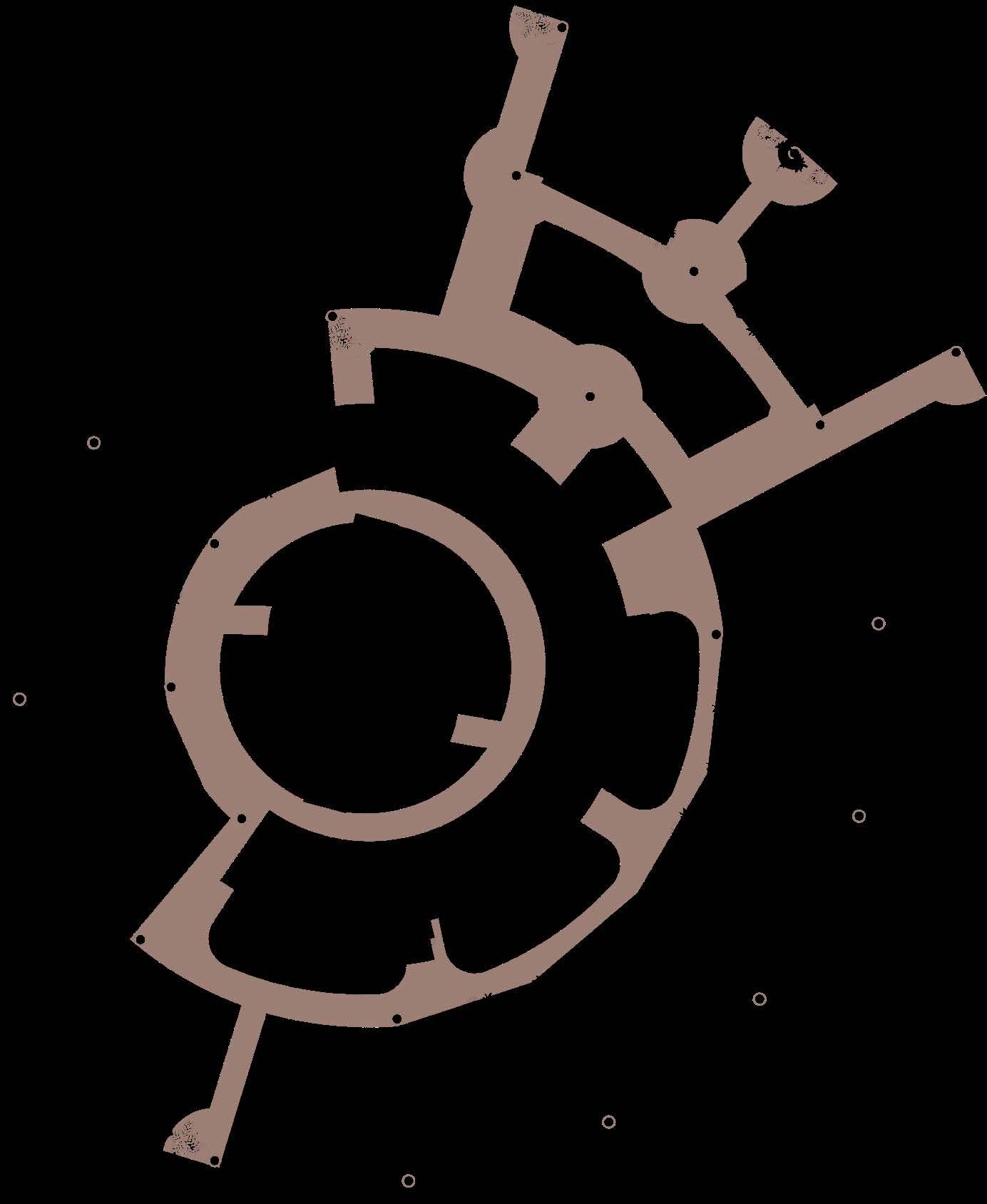 These are 3 different room sizes inside the retreat that receive the surrounding sound electronically and amplify it by having curved walls.