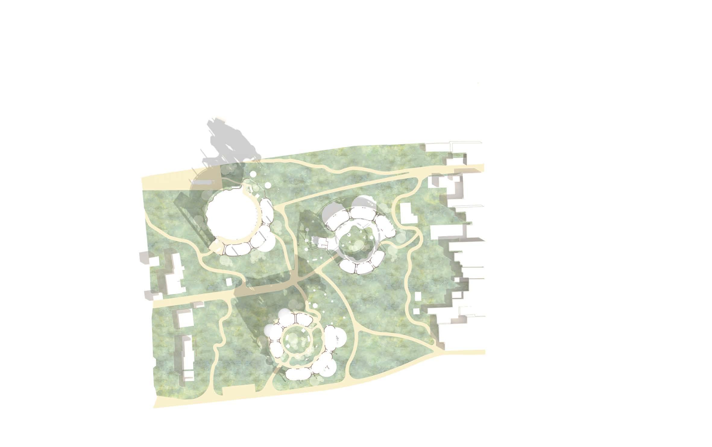 GOOD INFRASTRUCTURE IMPROVING ON-SUTE CIRCULATION INTRODUCING NEW VGETATION MEGASTRUCTURE METABOLISM MODULARITY ON-SITE BIKE ROUTES OPEN BUILDING EDGES OPPORTUNITIES TO DEVELOP ONE’S BUSINESS PRESERVATION OF VEGETATION PROVIDING GARDENING AREAS PROVISION OF OPEN AIR AND INDOORS SPACES FOR SOCIALISATION