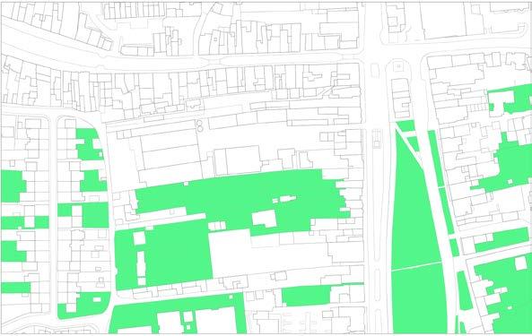 The site as it is does not have a unified building style, structure or purpose. It consists of three major zones, the Eagle Industrial Es tate, Parking lot and private gardens. The parking spaces take up most of the space, covering the site in concrete, limiting its other uses, and increasing ambient temperature. From the site visits parking lots, as well as the green areas, seem to be underutilised.