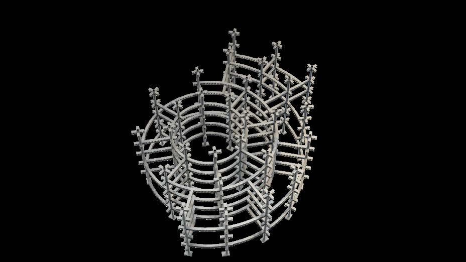 1) A Motherboard cylindrical core made of concrete that provides physical stability and supplier of all basic needs of a modern house (electricity, calefaction, drinkable water, and other things);