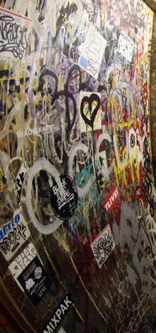 Medieval tapestry depicting events (left) and graffity in a night club (right) have similar function but in a more publically-controlled and available man ner. Both exist to commemorate events and people.