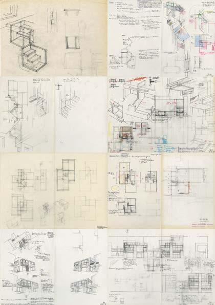 SEMESTER 1RETREAT: EXPLORATORY STUDY SUSTAINABLE COMMUNITY LIVING 3D PRINTED PROTOTYPE OF SPACE ABOVE (GUIDING BY LIGHT -SPACE IN RED). RIGHT (RED) SPACES OF RENDERS ON PICTURES A, B, C.