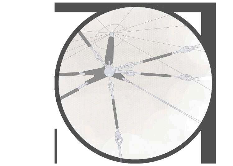 The high points of the supporting structure (steel cables) take up the down loads from the membrane and imposed loads (mainly wind loads) and the lower points at the edges take up the effect of wind uplift.