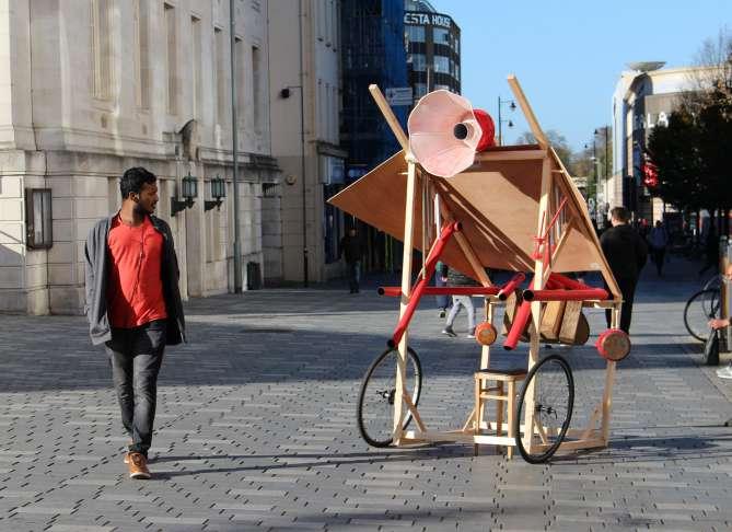 This co-machine has a function of a music box, where everyday objects are re-used to make a sound. The intension of the ‘Music Box’ is to provide an opportunity for a new hobby for youth. The programme is informed by the high crime statistic amongst young people in Luton. Providing a hobby is one of the ways to give a source of inspiration and busyness, preventing thoughts of commiting a crime. Moreover, a co-machine creates a welcoming and interesting environment, attracting more visitors, which in it’s turn makes Luton streets livelier.
