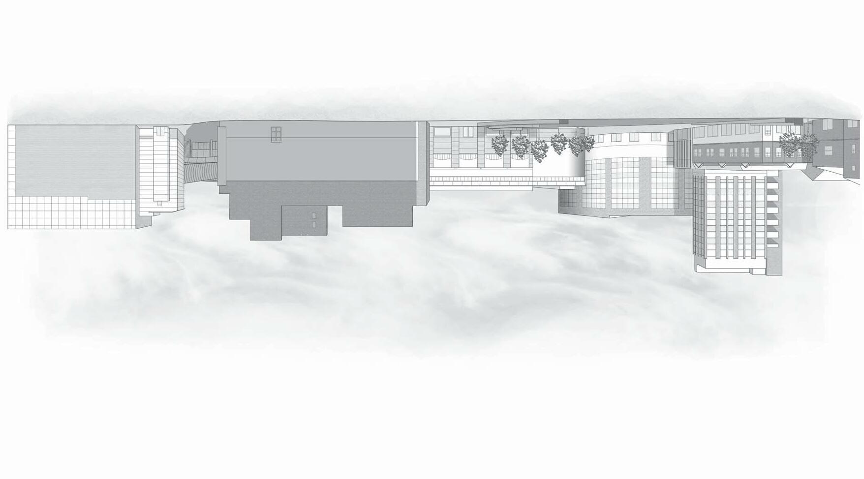 1 : 50 Sectional Perspective: Exploration of Building Spaces + Ventilation Strategy Outdoor