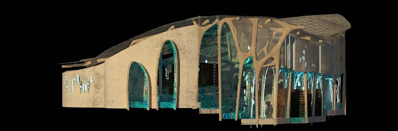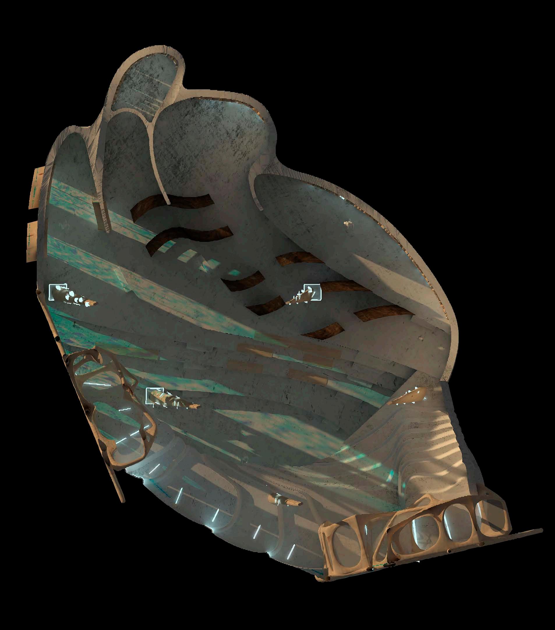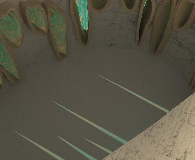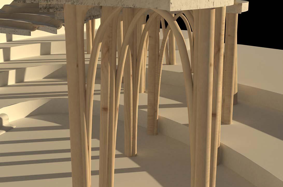 The shape of study rooms, columns and arches was inspired by voronoi pattern and developed through looking on Gaudi’s architecture, his curvy arches in particular. 22 Study Rooms, Arches and Columns Development View: Study rooms+stairs View: Study rooms + arches