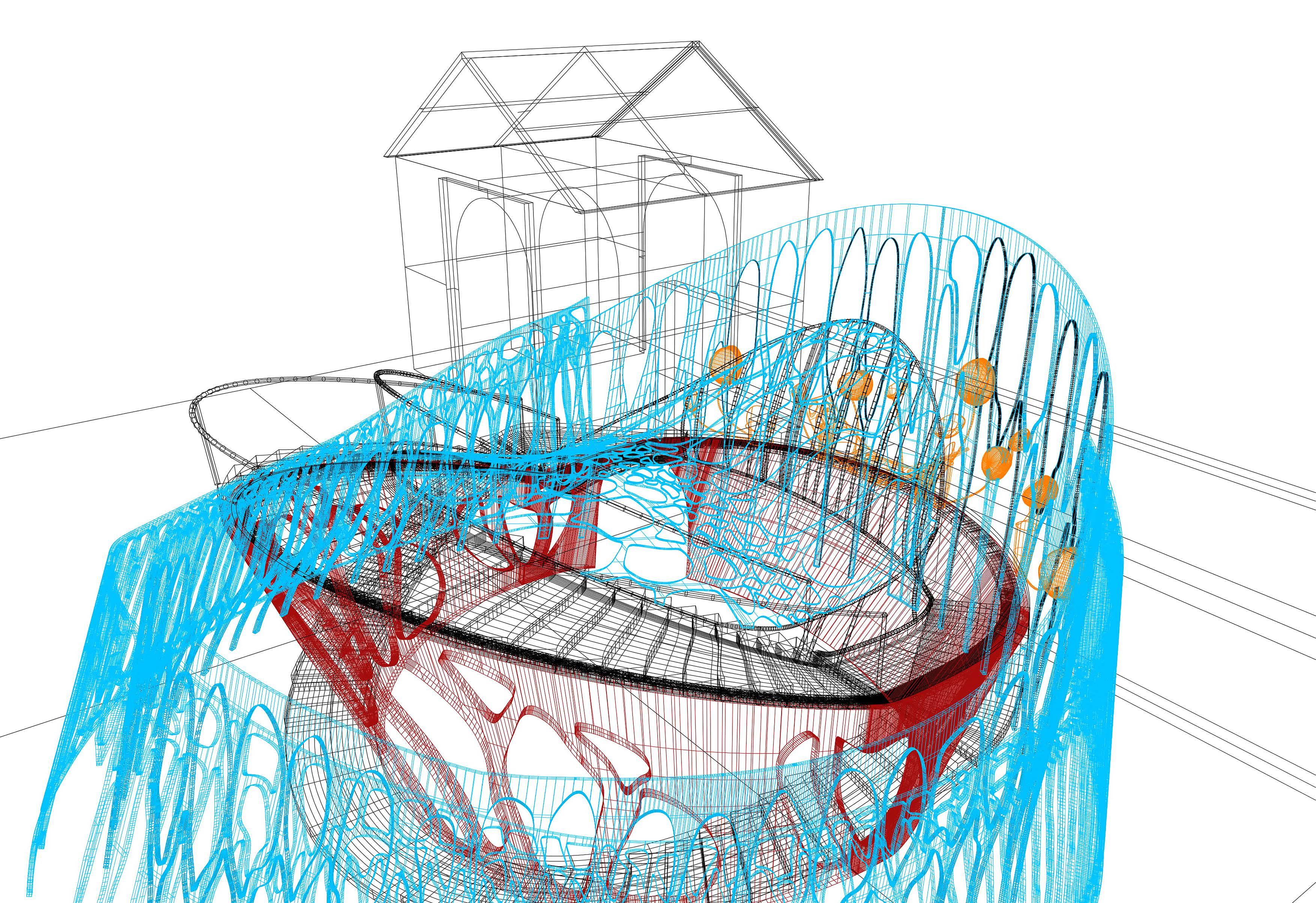 Idea of a new building developed from initial curvy shape of the plant+the idea of having a staircase and a view point.
