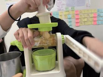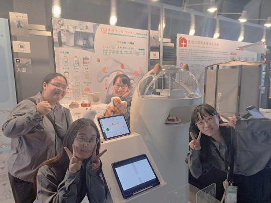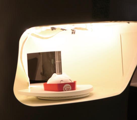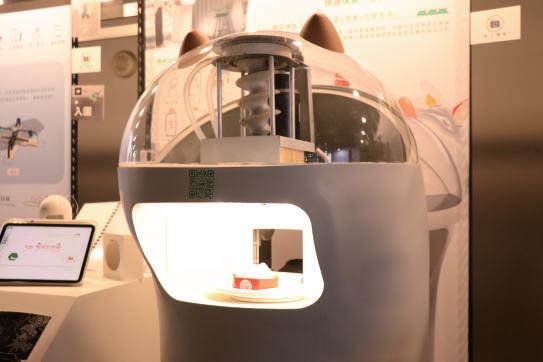 。將杯子放在指定位置後,等待冰淇淋製作時,可以 透過半圓罩上方觀看製作過程。同時,你也可以思考 煩惱的問題,3分鐘後隨機造型的冰淇淋便會完成,