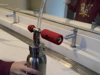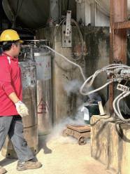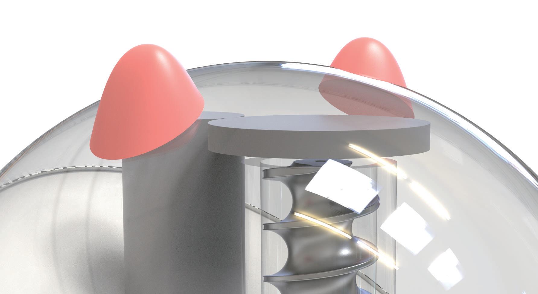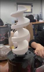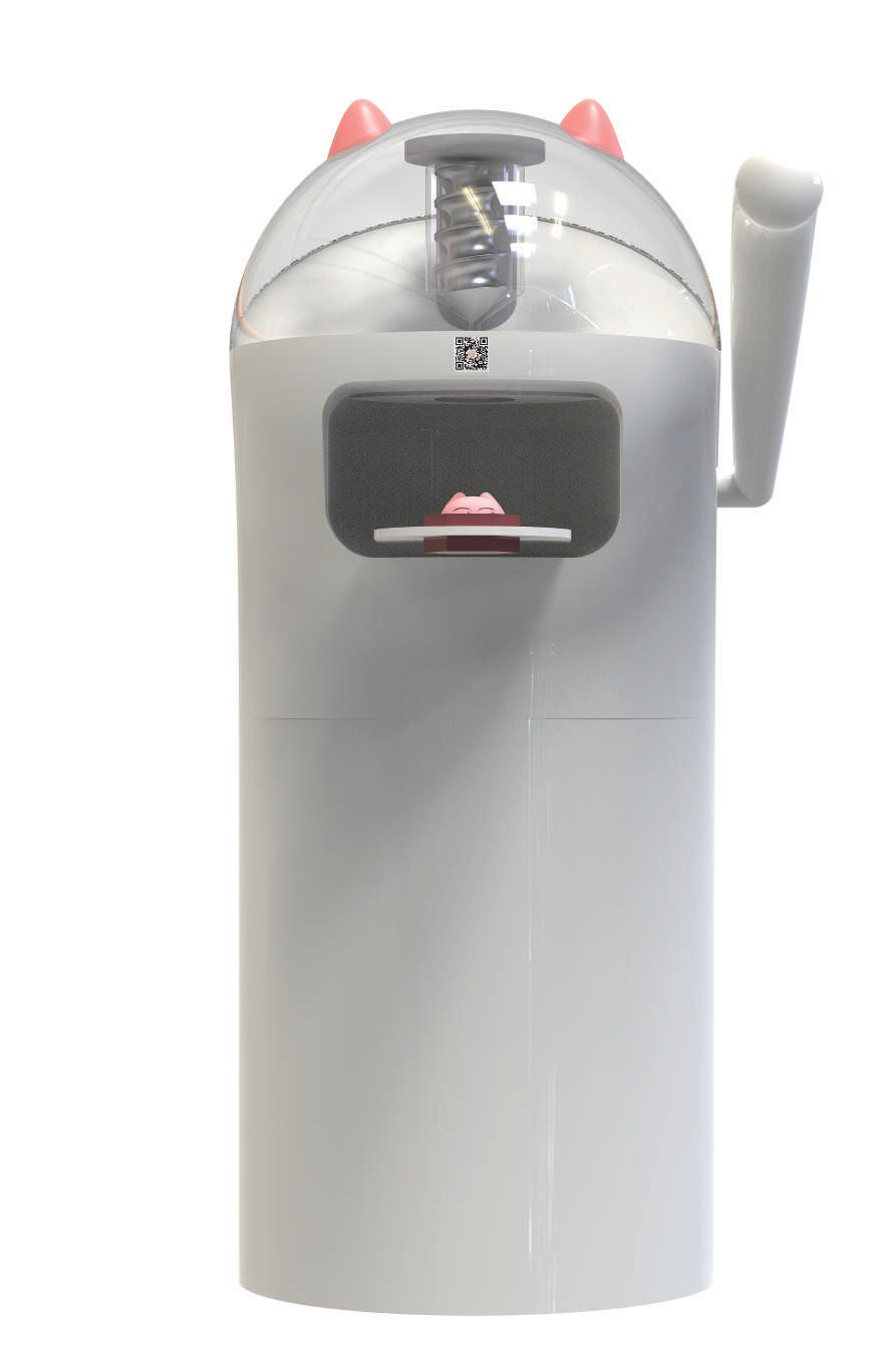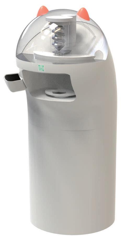 放置在百貨中心的無人冰淇淋機臺,運作方式是透過氮氣加壓,將冰淇淋原料輸送至攪拌桶,再利用液態氮產 生的壓力將液態氮送入攪拌桶。攪拌桶內的馬達和齒輪系統運作,不同齒比的齒輪將旋轉速度從每分鐘32轉降 至每分鐘10轉,以慢速攪拌來更均勻地混合原料。旋轉螺旋上下攪拌,使原料與液態氮充分融合,直到冰淇淋 成形。最後,下方開口打開,將成形的冰淇淋擠入模具中塑型。