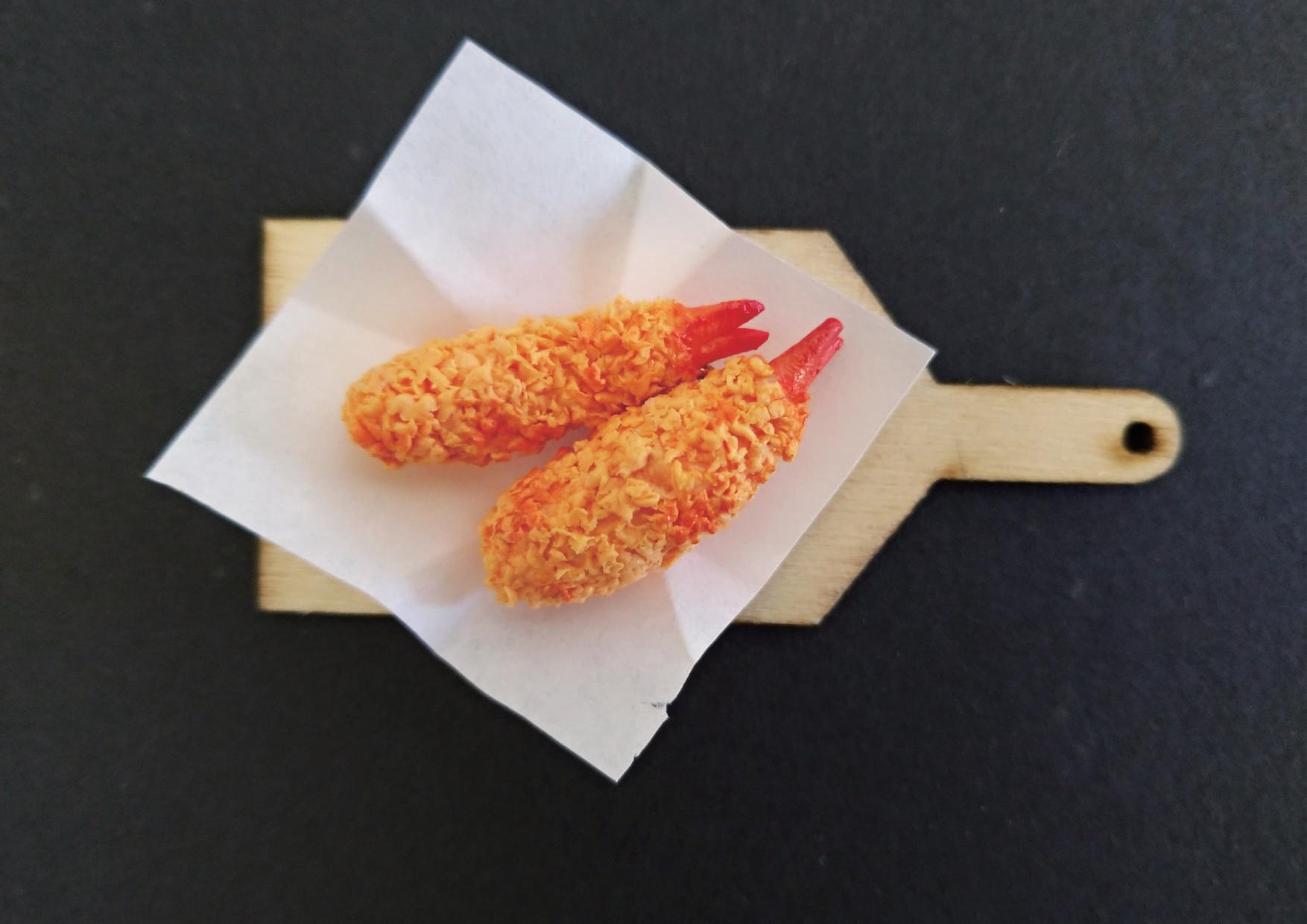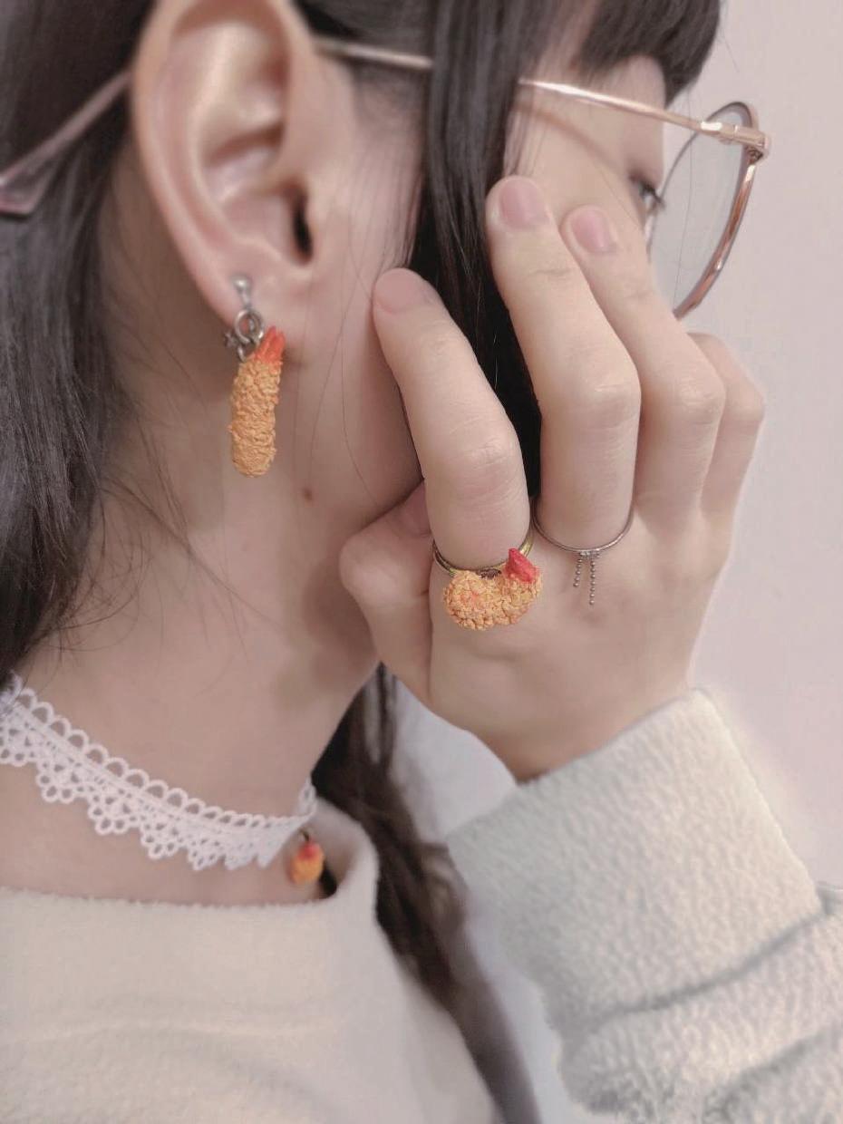 把最喜歡的炸蝦做成各種飾品就能隨時帶在身 邊,金黃酥脆的麵衣在飾品中再現,既保留了 炸蝦的美味感受,又增添了可愛與趣味。