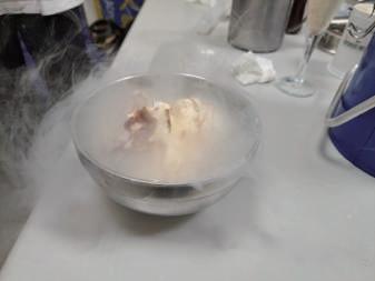 使用單純的原料作為冰淇淋基底,把冰淇淋的製作程序移到了 溝買之後,在消費者購買冰後,才會將定量的冰淇淋原料透過 液態氮的急速冷凍技術不使用壓縮機,瞬間凝結成更新鮮更有 趣的滋味送到消費者手中。 現 做