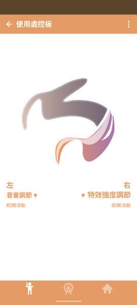 APP包含體感模式與遊園模式兩個部分,可以使用APP定義耳機左右耳滑動區域調整,按摩溫度、強弱,不同劇情體驗選擇; 並能與其他遊客交流分享私訪景點,配合園區活動集點闖關功能,園區會自動拍照捕捉美好畫面可在此處查看及分享。