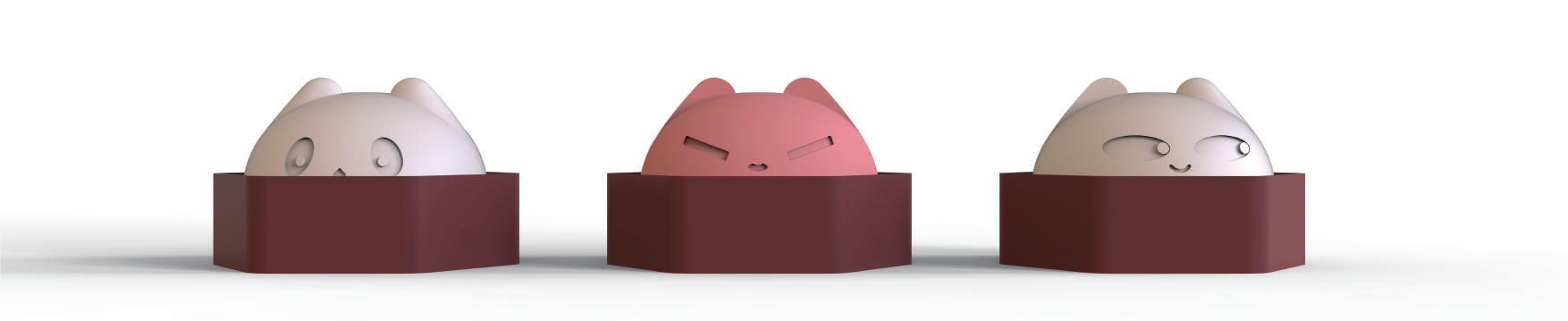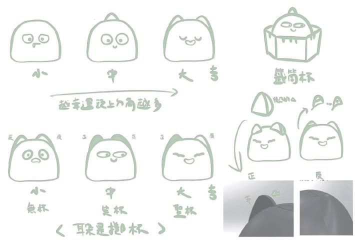 造型靈感來自擲筊,筊的正反組合代表可行、未定、 不同意三種意涵,因此將這些概念設計成冰淇淋的耳 朵造型,使其像招財貓般討喜,小小的寓意也增添了 吃冰淇淋時的樂趣。