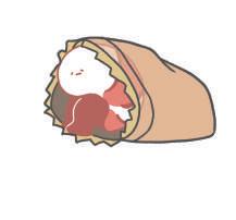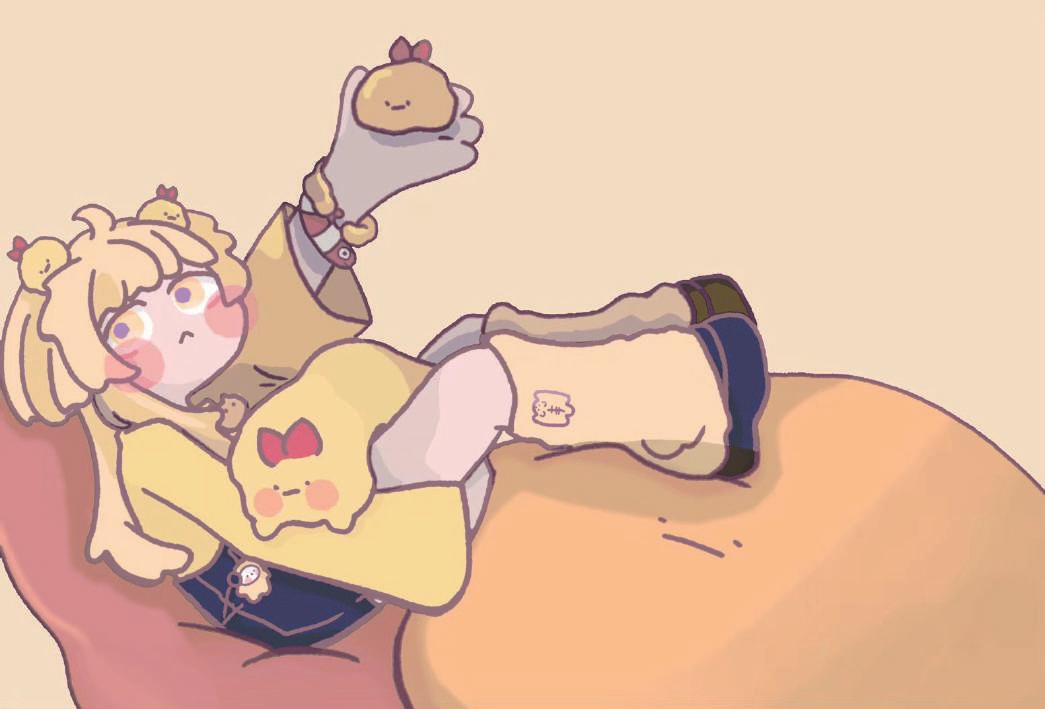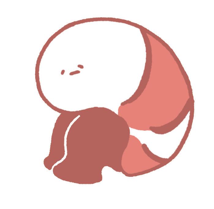 以蝦仁彎曲的身體與尾巴衍伸出蜷縮著的小精靈形象。