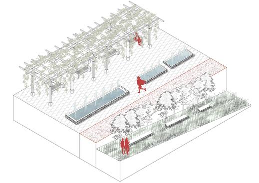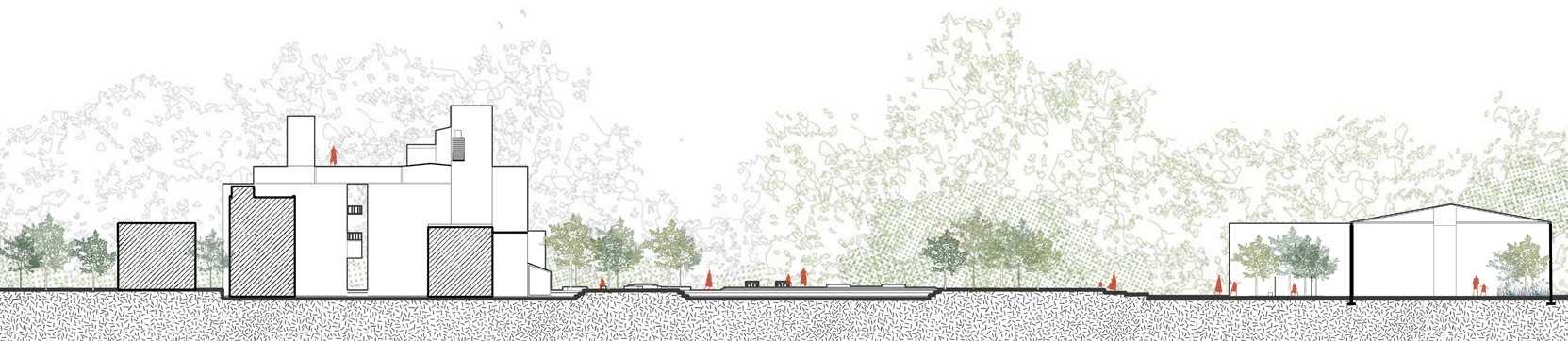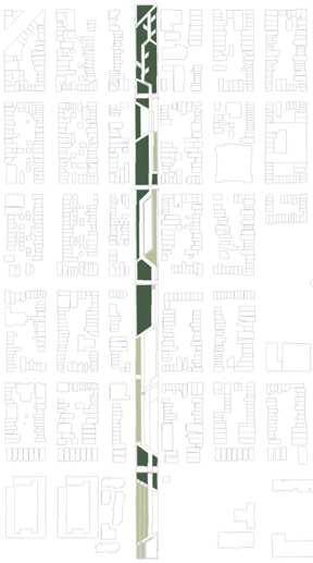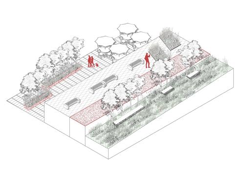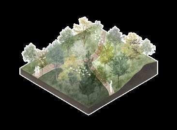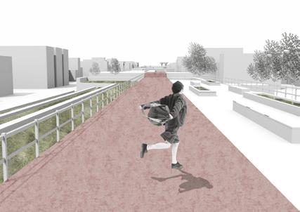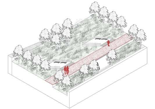 Iconic features like stone walls and railway elements are preserved to showcase the site's industrial heritage, blending history with modern design. Pedestrian walkways, slopes, and stepped trails reconnect communities once divided by the railway, fostering a healthy lifestyle and closer social ties. Beyond leisure and ecological bene昀椀ts, the park incorporates cultural and educational features, such as art exhibitions, enriching its signi昀椀cance.