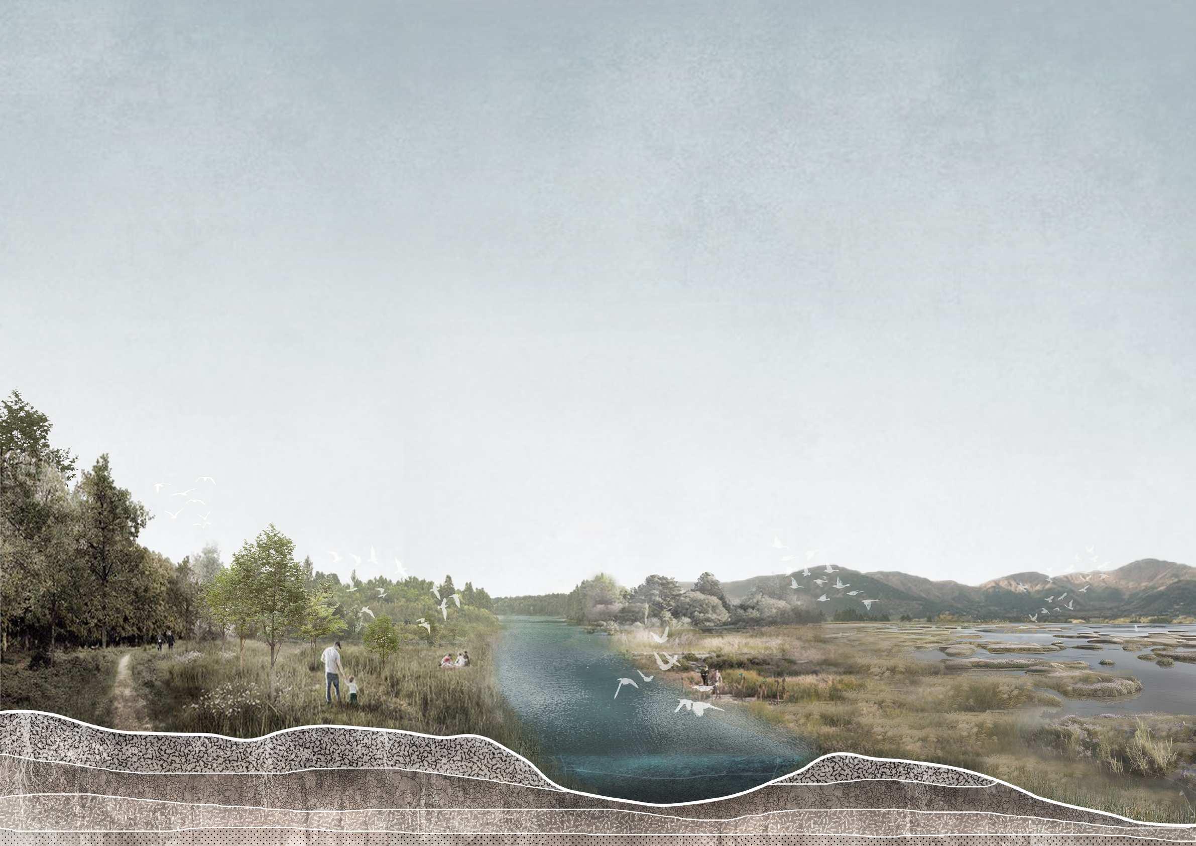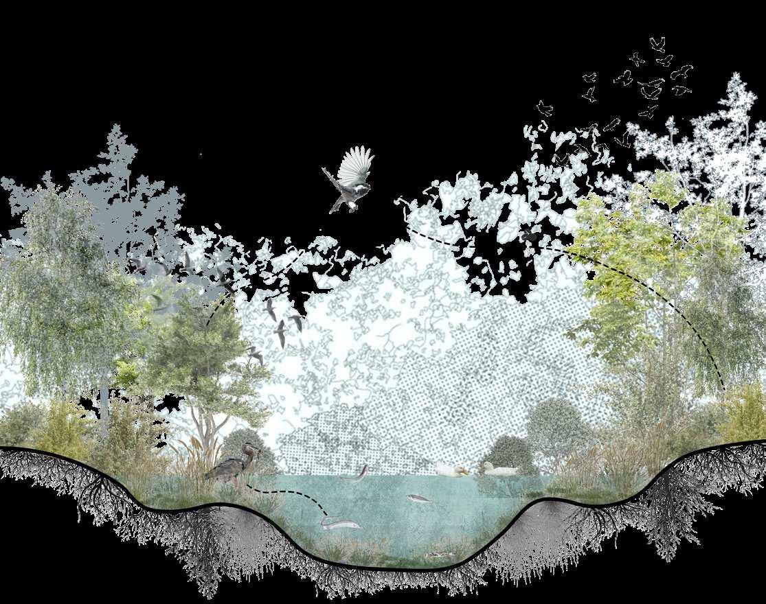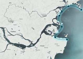 The design aims to rehabilitate a degraded waterfront wetland that has su昀昀ered from logging, human encroachment, and illegal 昀椀shing, transforming it into a thriving ecosystem tailored to support the migration and breeding of the endangered Chinese crested tern.