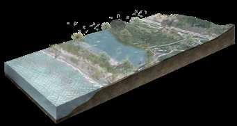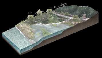 Through water storage and aquaculture in forest 昀椀sh ponds, 昀椀ltration in community rainwater puri昀椀cation zones, e昀케cient irrigation in agricultural canals, subsistence farming in rooftop gardens and family farms, and distribution of agricultural products in trade markets, the project establishes a sustainable development system that integrates water management, food production, and economic vitality.