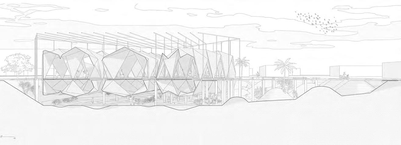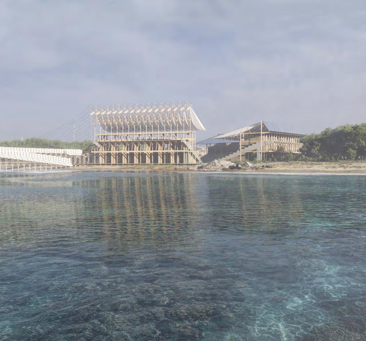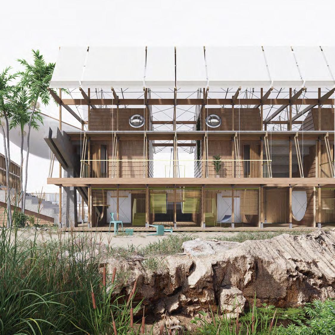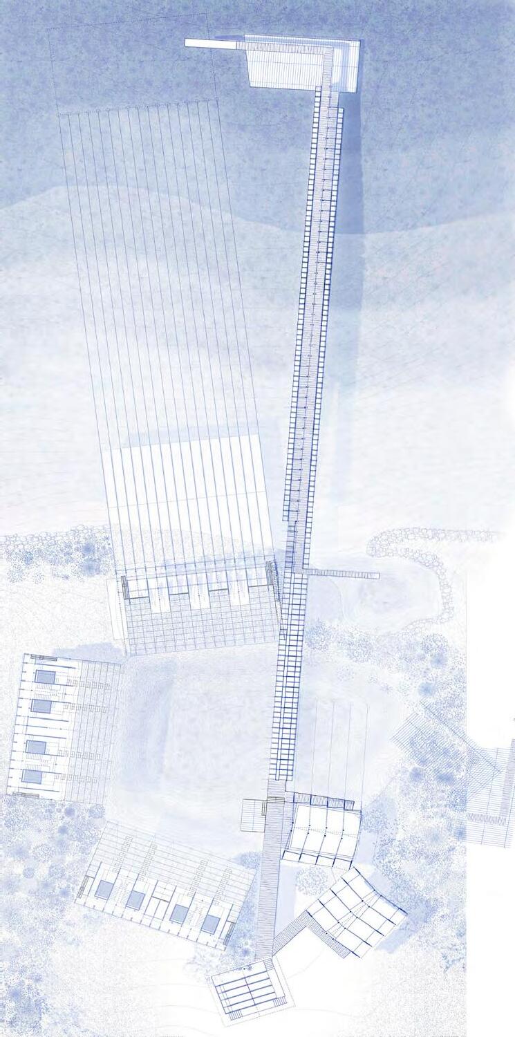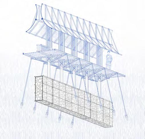 We propose an inversion of that historical hierarchy . The new architecture relinquishes its podium, descending to meet the water at its own level. It becomes a porous framework:a series of passages, platforms, and thresholds designed for subtle mediation. The rigid stage is dissolved into a wandering path that traces the land’s forgotten gradient to the mangrove.