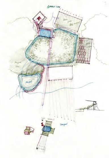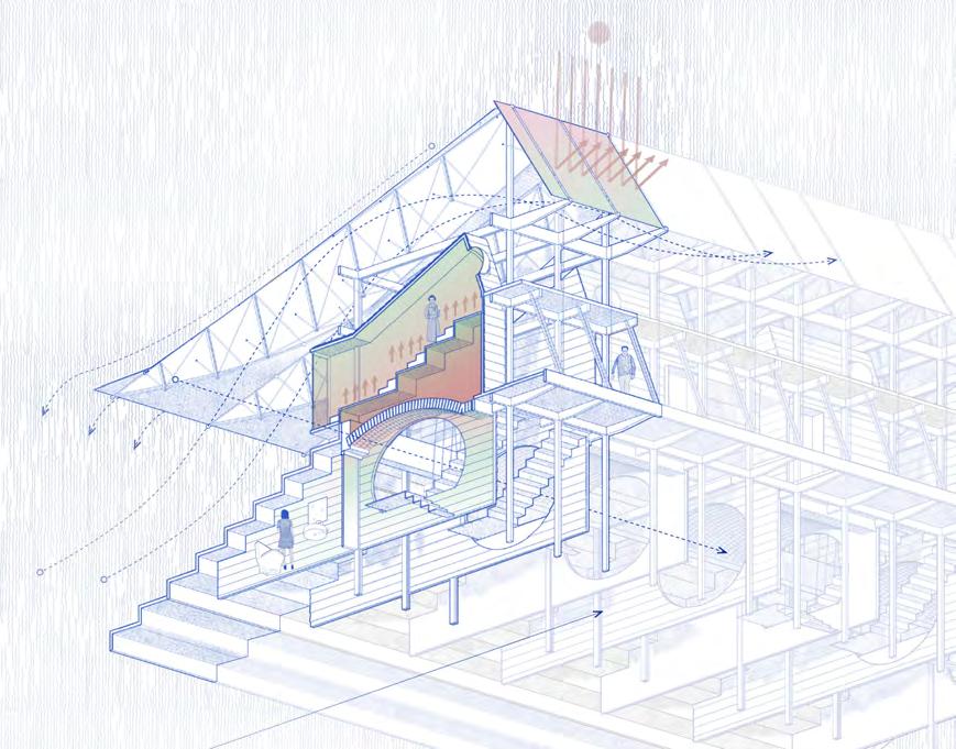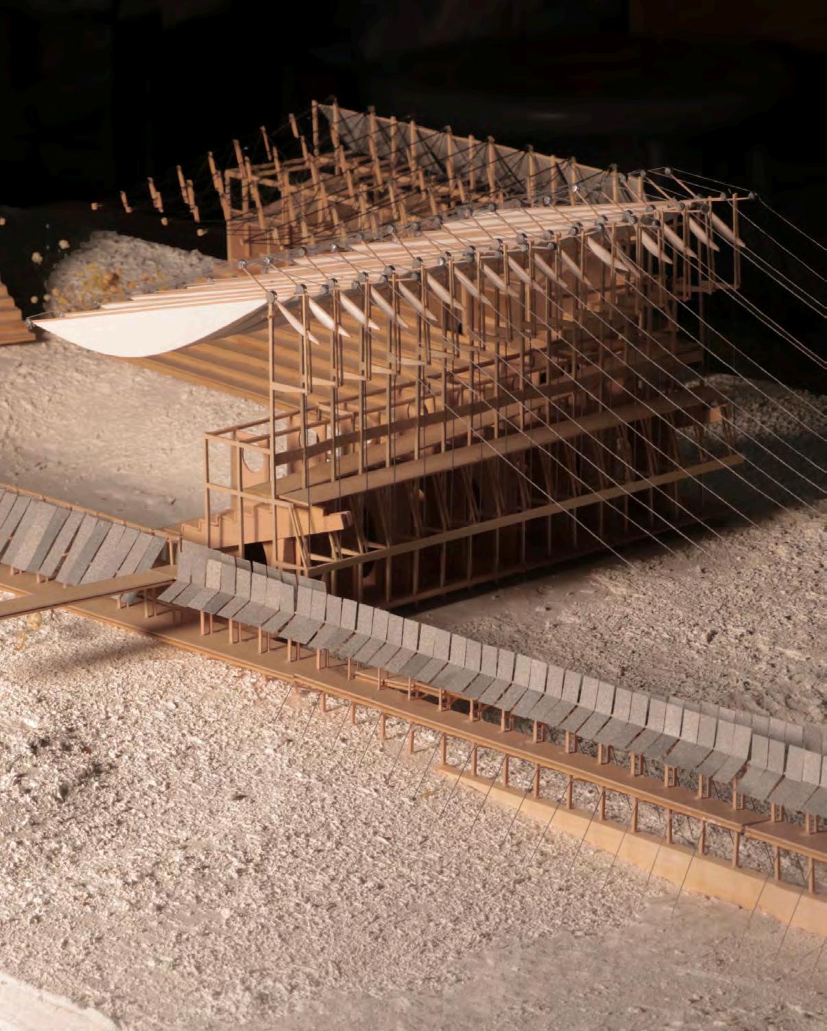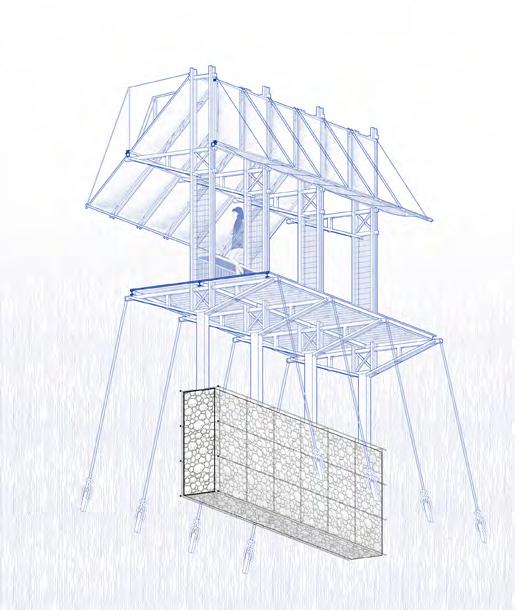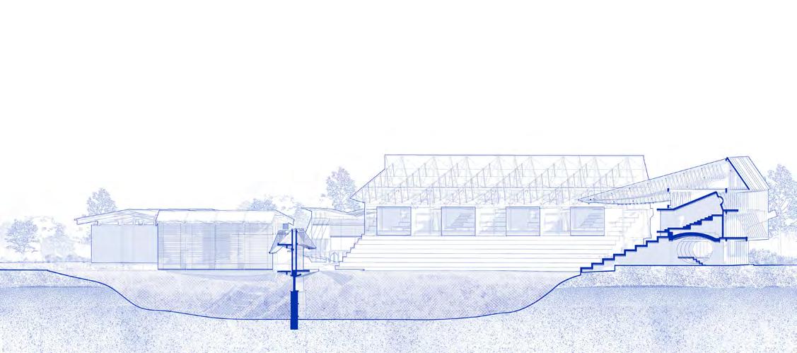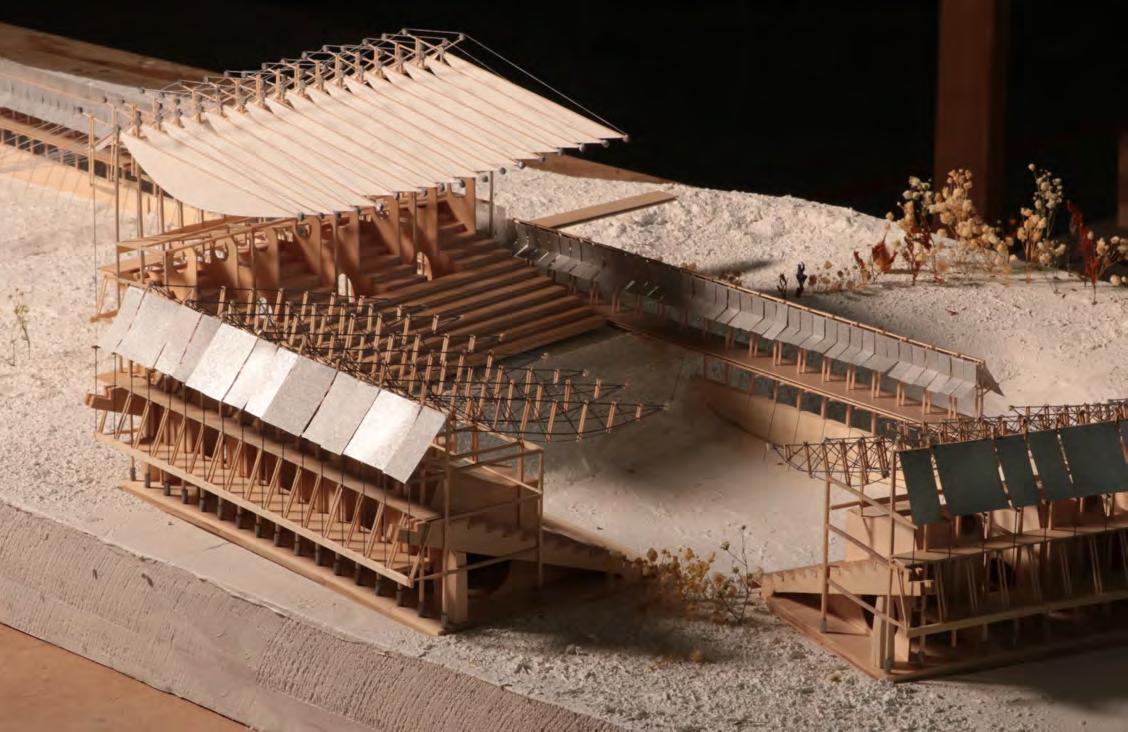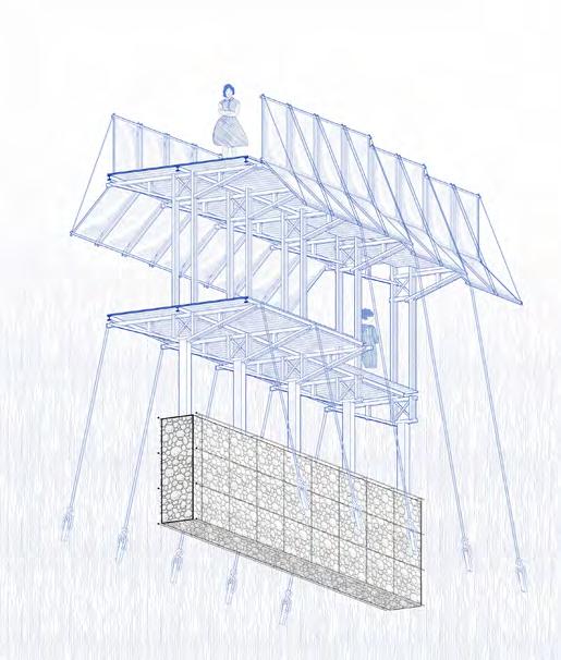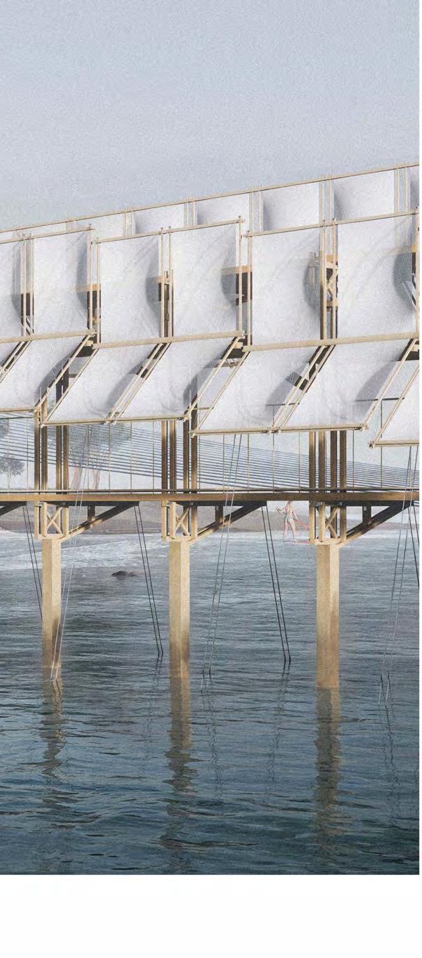 We propose an inversion of that historical hierarchy . The new architecture relinquishes its podium, descending to meet the water at its own level. It becomes a porous framework:a series of passages, platforms, and thresholds designed for subtle mediation. The rigid stage is dissolved into a wandering path that traces the land’s forgotten gradient to the mangrove.