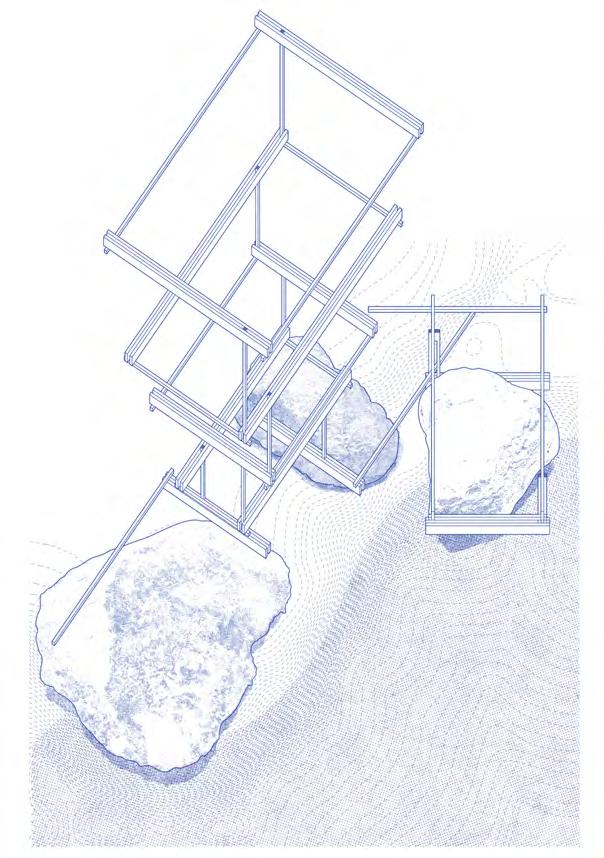 Our preliminary studies began by reading the site's adjacent shoreline terrain not merely as landscapes, but as the basis for an imaginary archipelago —a speculative field condition of rock and tidal memory. This conceptual ground became the foundation for exploring how waterresilient structures might interact with such a condition.