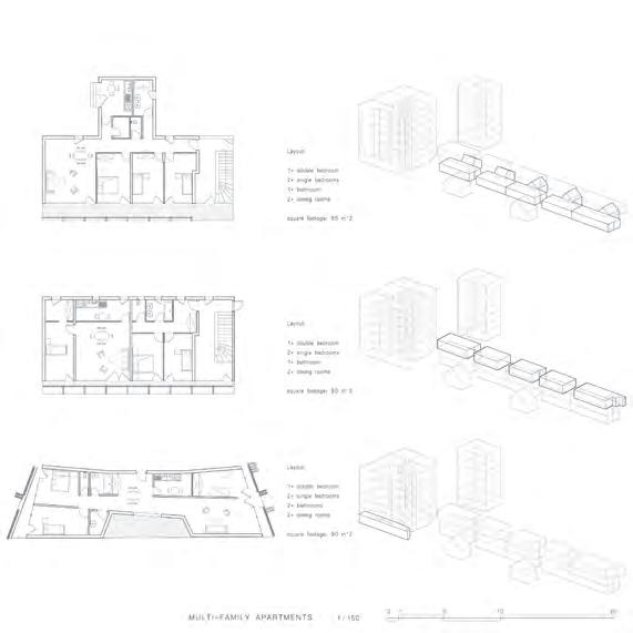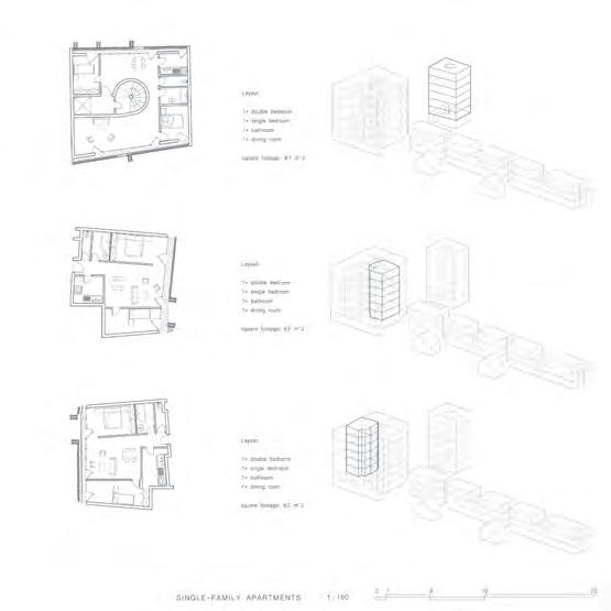 The project promotes social and demographic inclusivity through a varied composition of residential units, encompassing spacious three-bedroom family apartments alongside more compact one-bedroom configurations. This range accommodates diverse household sizes, needs, and lifestyles, ensuring broader accessibility within the urban fabric.