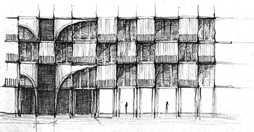Long Section A - A towards the sea-facing "billboard" bleacher
