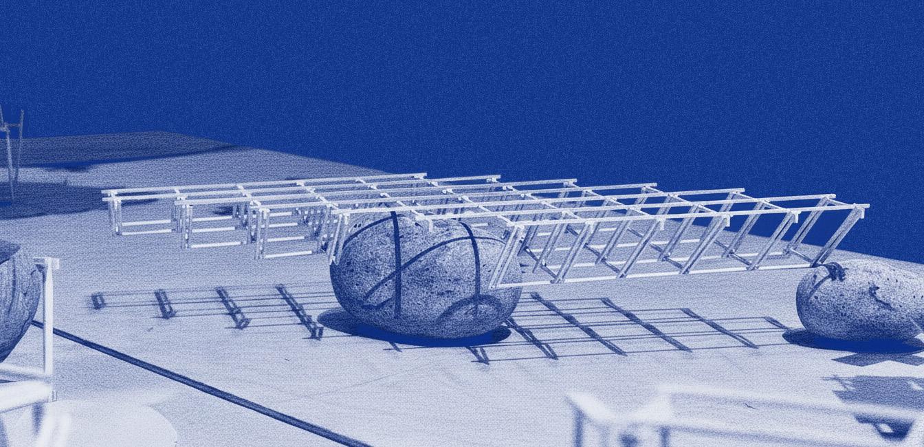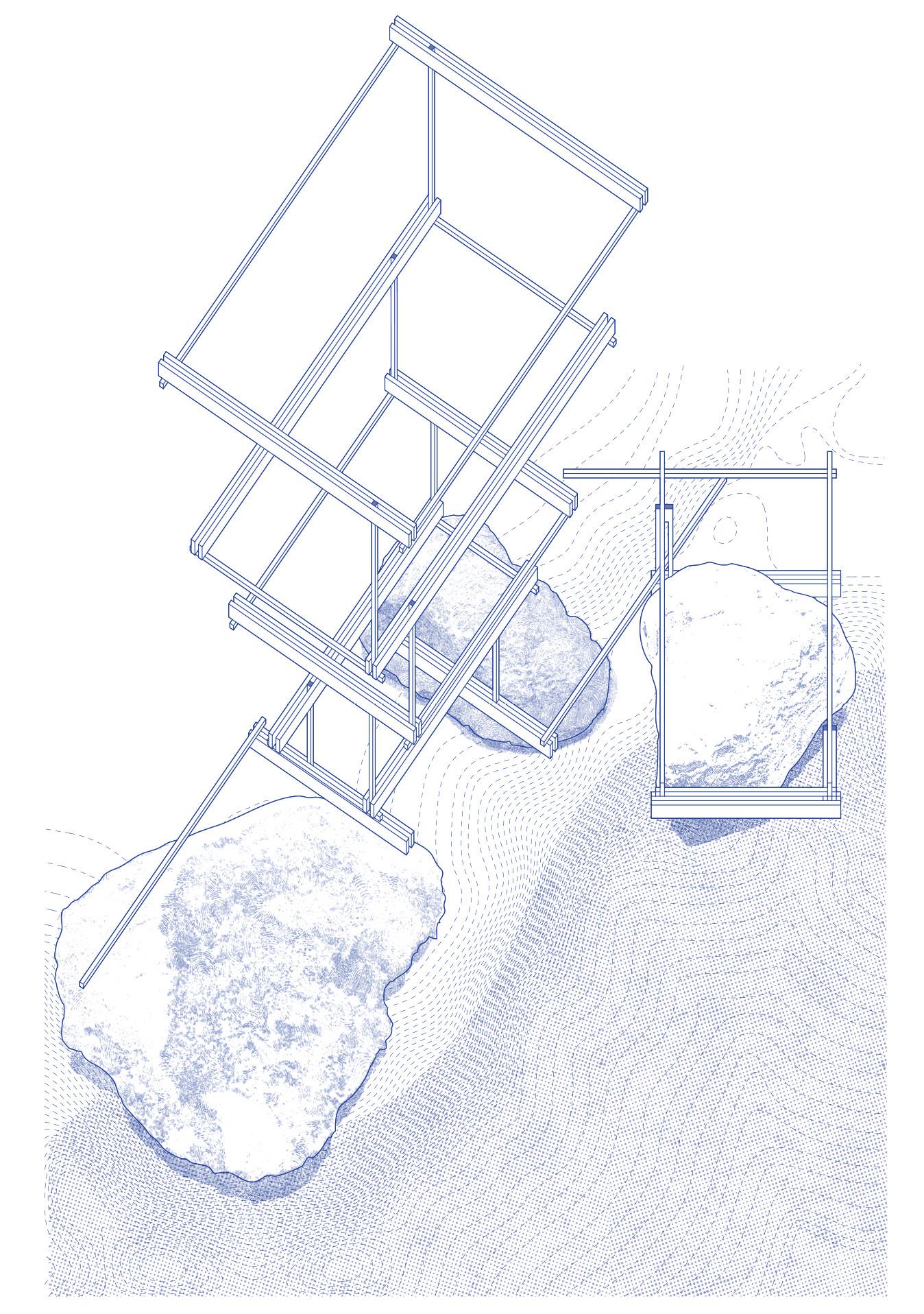 Our preliminary studies began by reading the site's adjacent shoreline terrain not merely as landscapes, but as the basis for an imaginary archipelago —a speculative field condition of rock and tidal memory. This conceptual ground became the foundation for exploring how waterresilient structures might interact with such a condition.