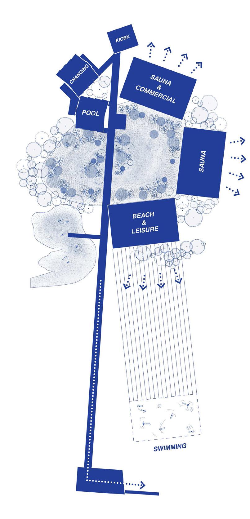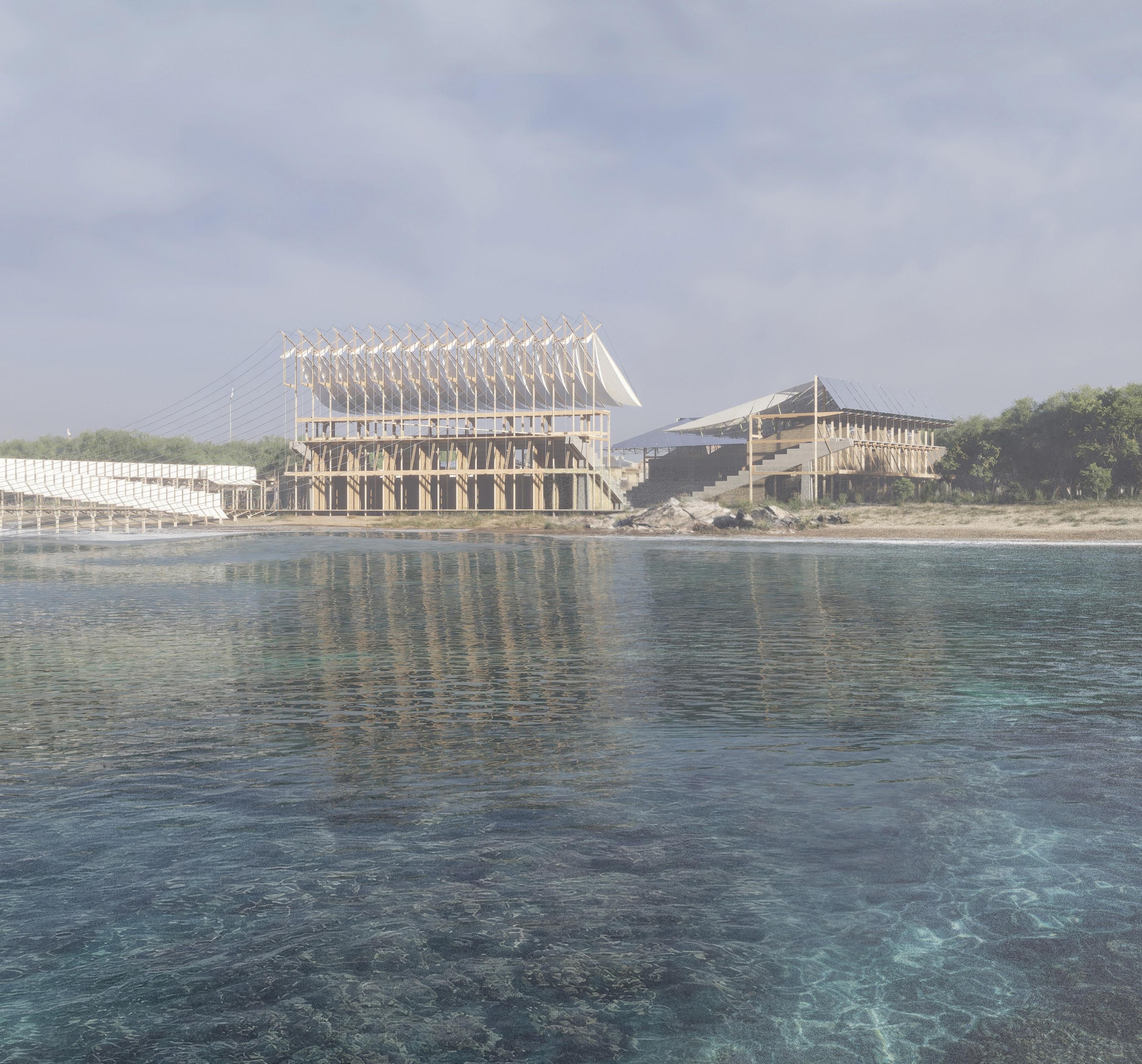 The endpoint of this designed decay is a grand ecological integration. Given current sea-level rise projections, the entire site will eventually succumb to permanent inundation, merging all its water elements into a continuous lagoon Stripped of their lighter auxiliary structures and sauna houses, the robust concrete bleachers will endure as a submerged armature. These ruins are destined to become a foundation for new life, actively fostering coral colonization and evolving into a vital component of a nascent lagoon ecosystem. Thus, the project completes its cycle, transitioning from a temporary venue for human gathering to a permanent substrate for marine regeneration.