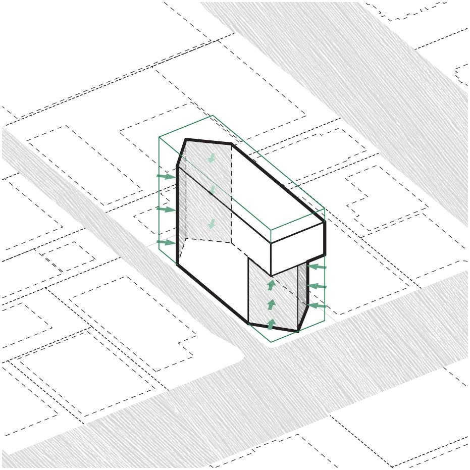 Shared Future Site C is a narrow lot in West Hollywood, oriented along a northwestsoutheast axis. Its immediate adjacency to two prominent urban passageways calls for a responsive and engaging architectural solution. This can be achieved through deliberate massing and thoughtful articulation of the façade to create an inviting presence within its dynamic context.