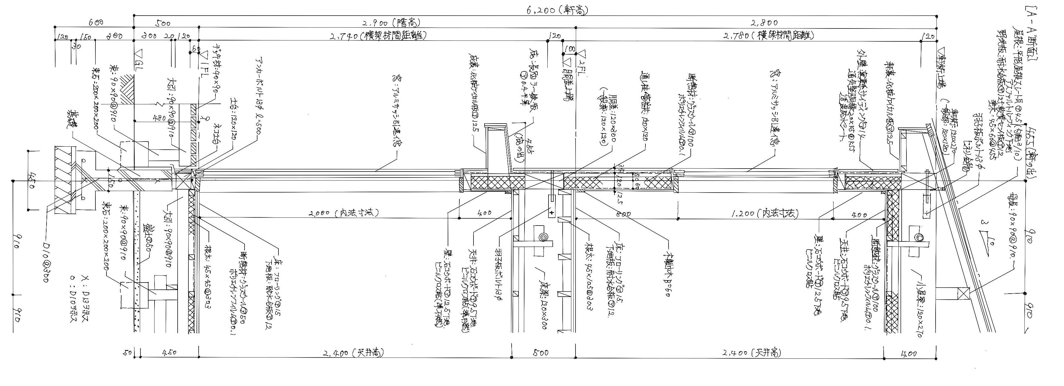 ℓ:横架材⾧さ(m) 市販規格材(3・4・5m) 5m以上は特別注文材実⾧を示す. 断面寸法表示のない部材は すべて105×105㎜