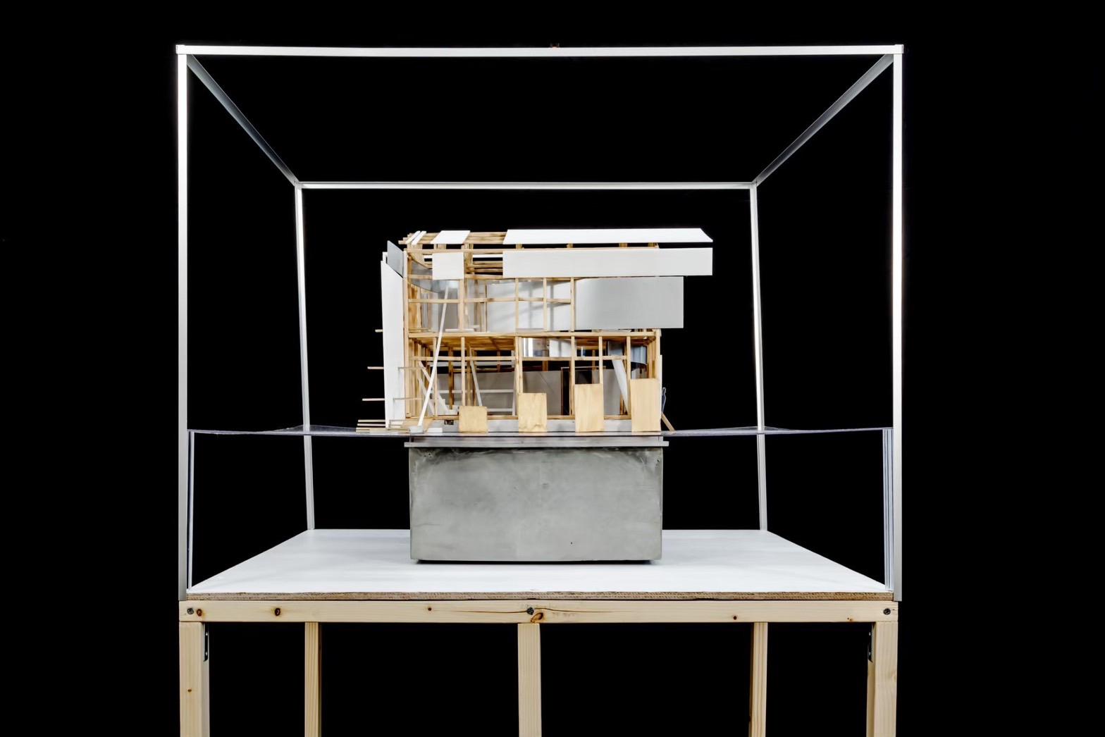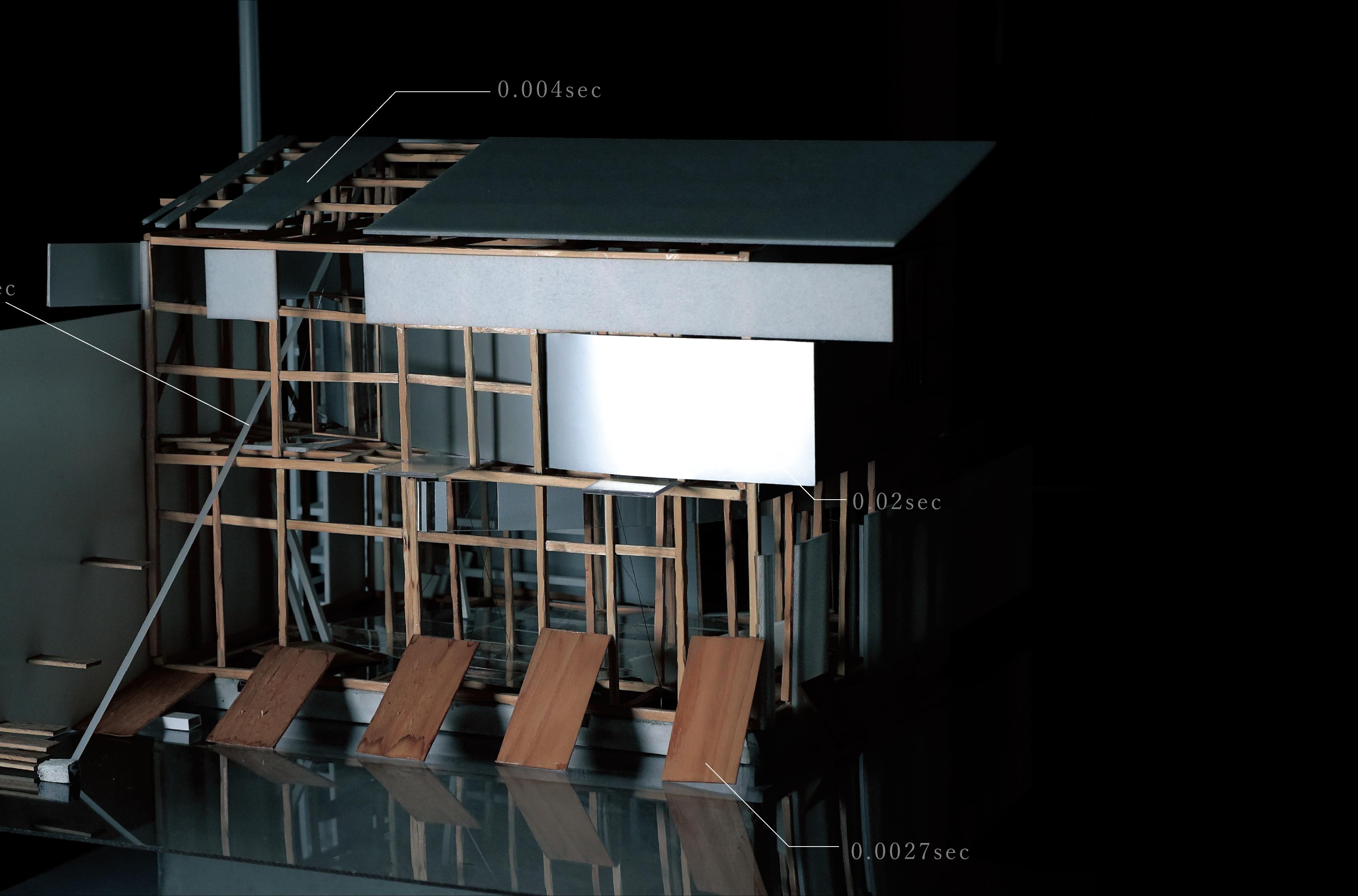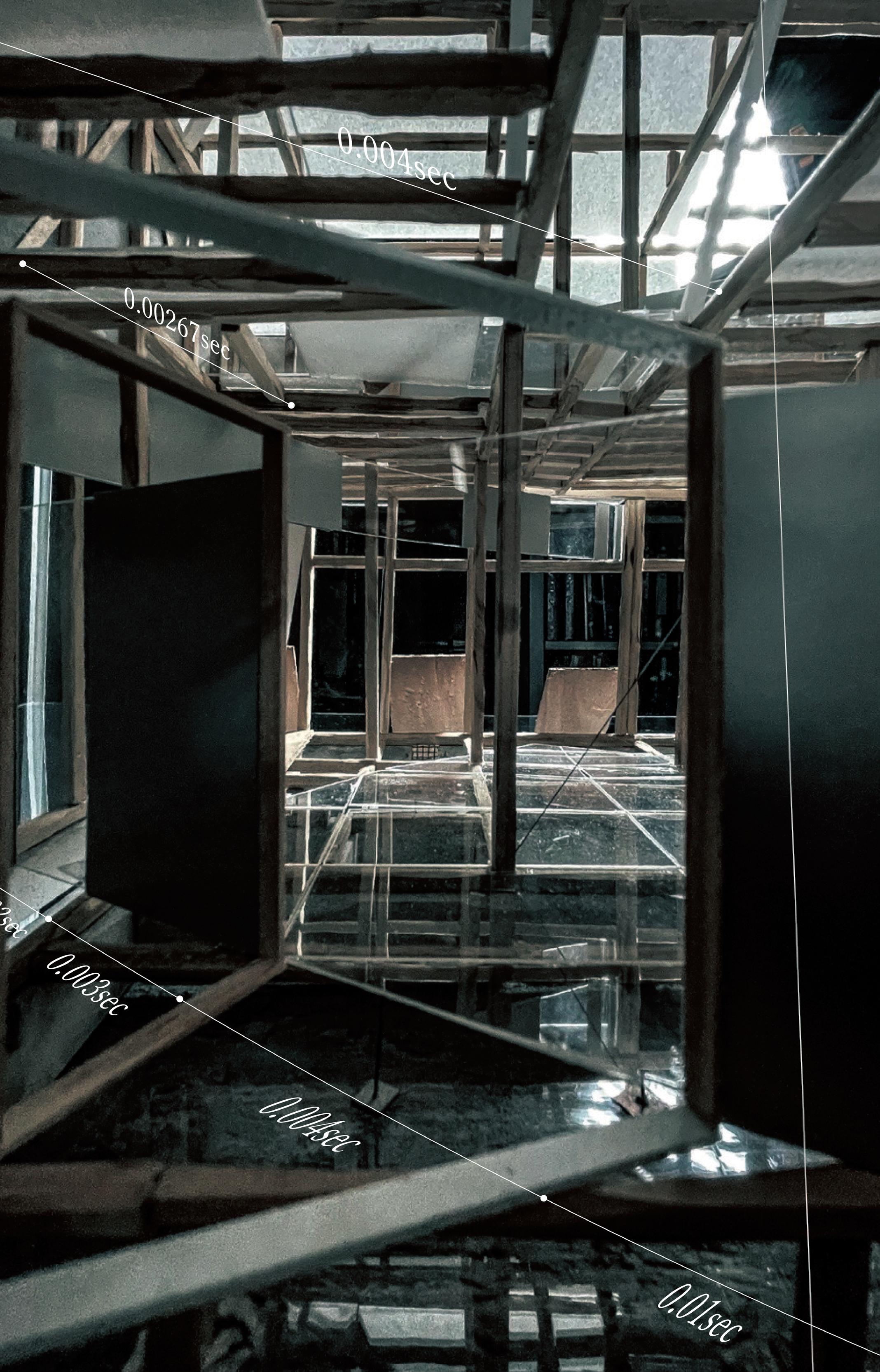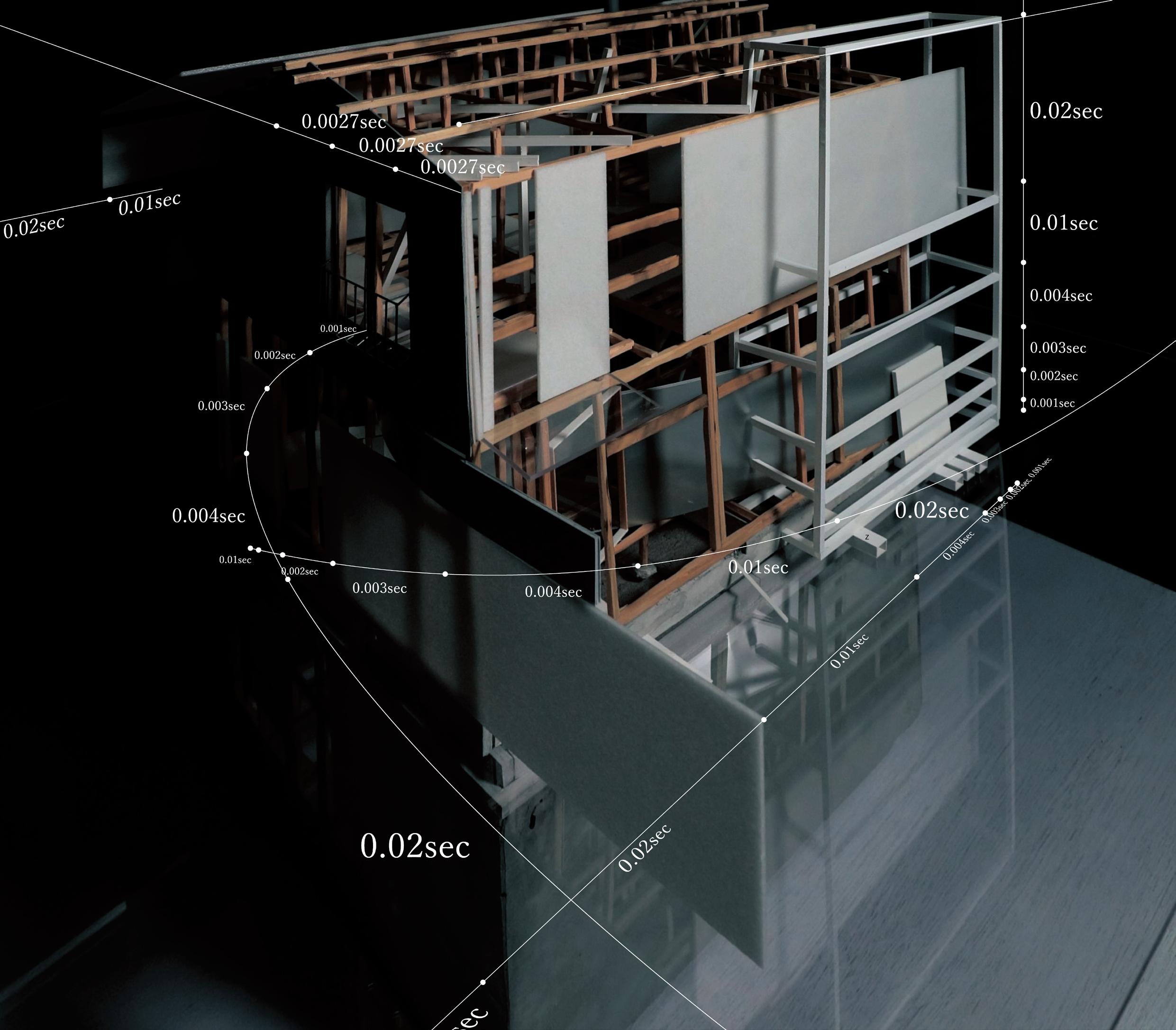 This design was based on a video of an existing wooden frame that once existed in Tokyo Gaienmae, which was used in Ryoji Suzuki's "Absolute Site" (1987), as the only documentation of its existence, and was designed with the actual construction in mind. I selected this legendary work, which has formal similarities with the absolute site but is little known due to its brief exhibition only, as a stage to output my past research while exploring its possibilities in the modern age. (If you are interested, please click the QR code below right to watch the video.)