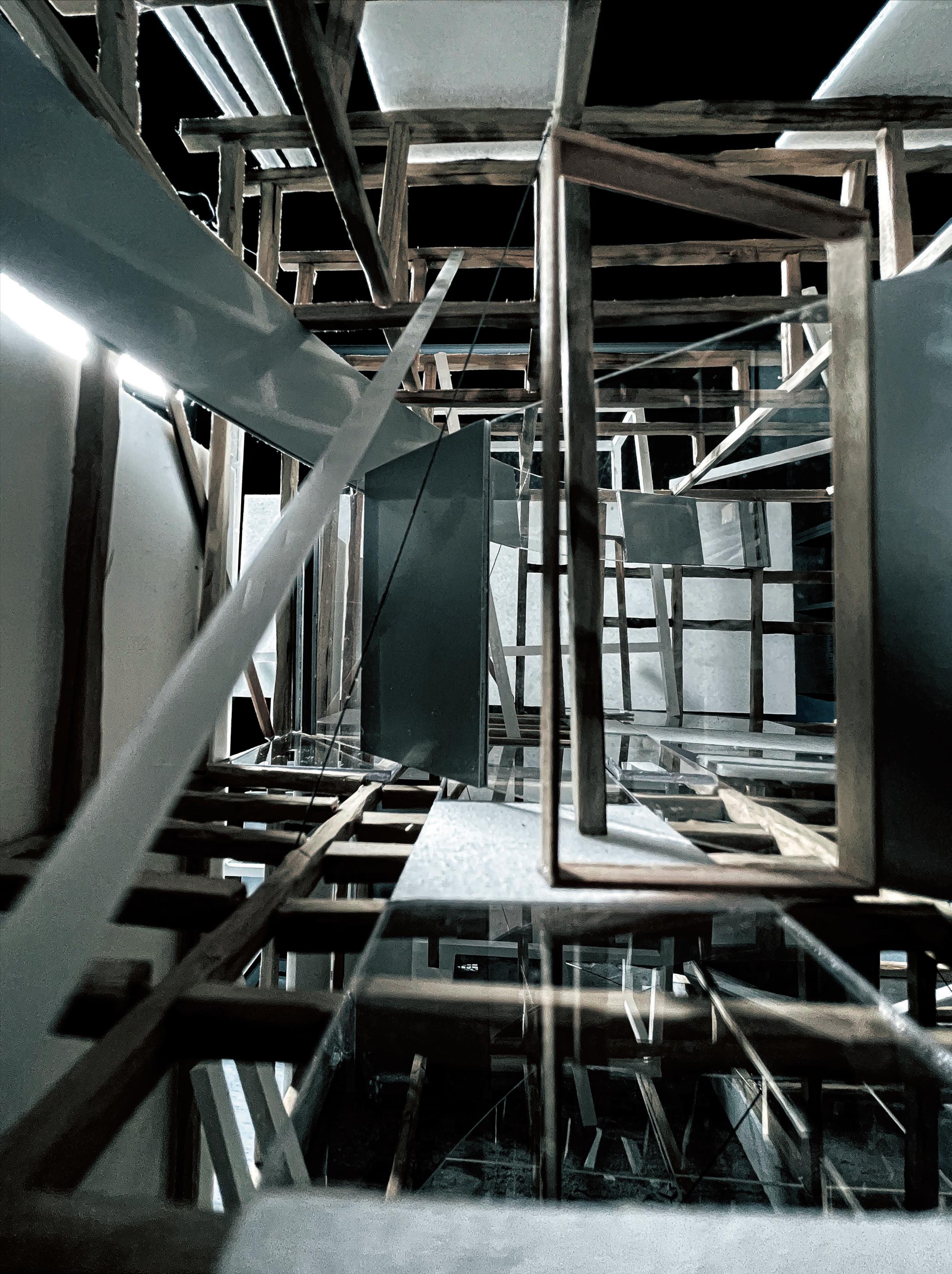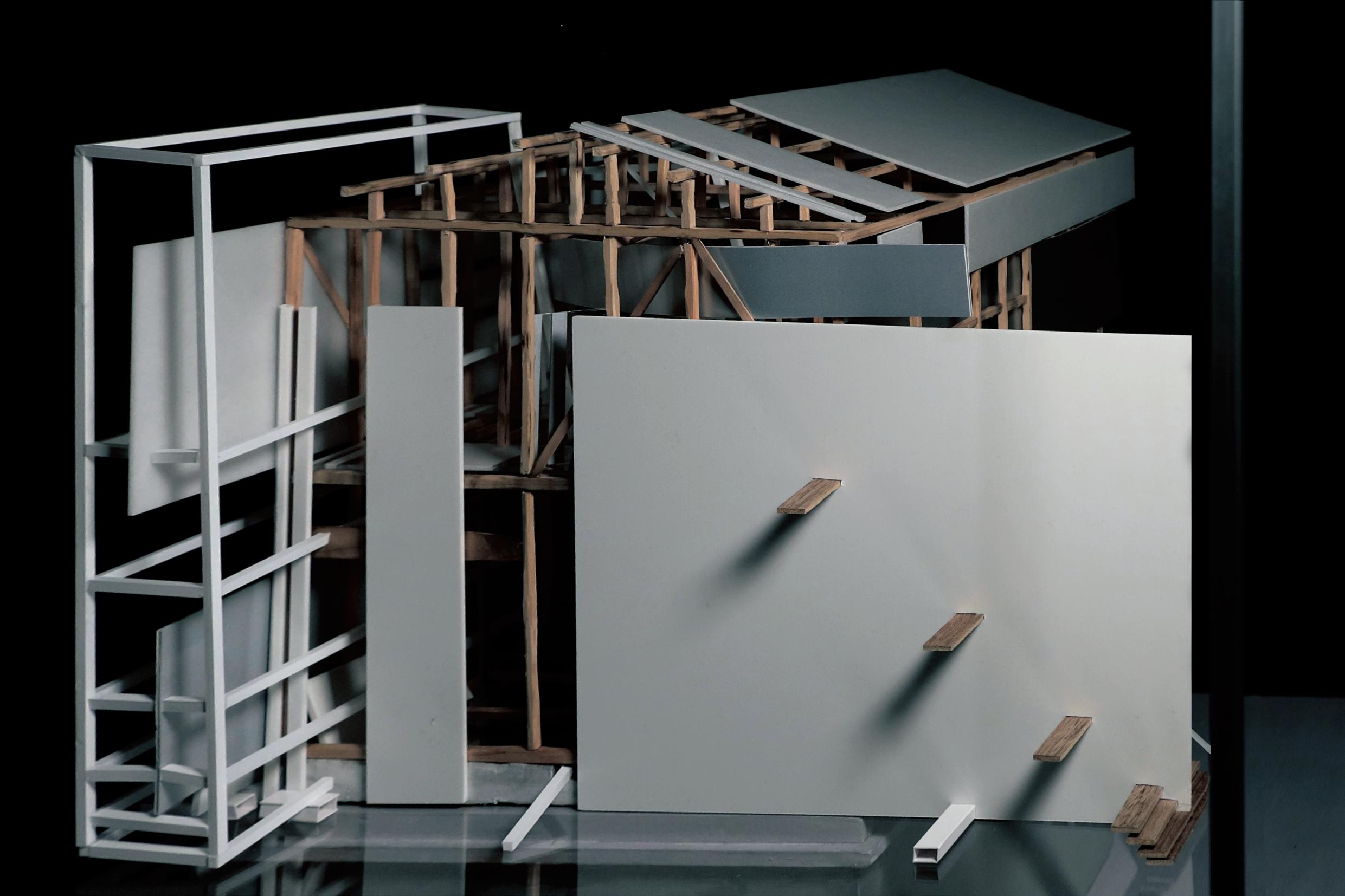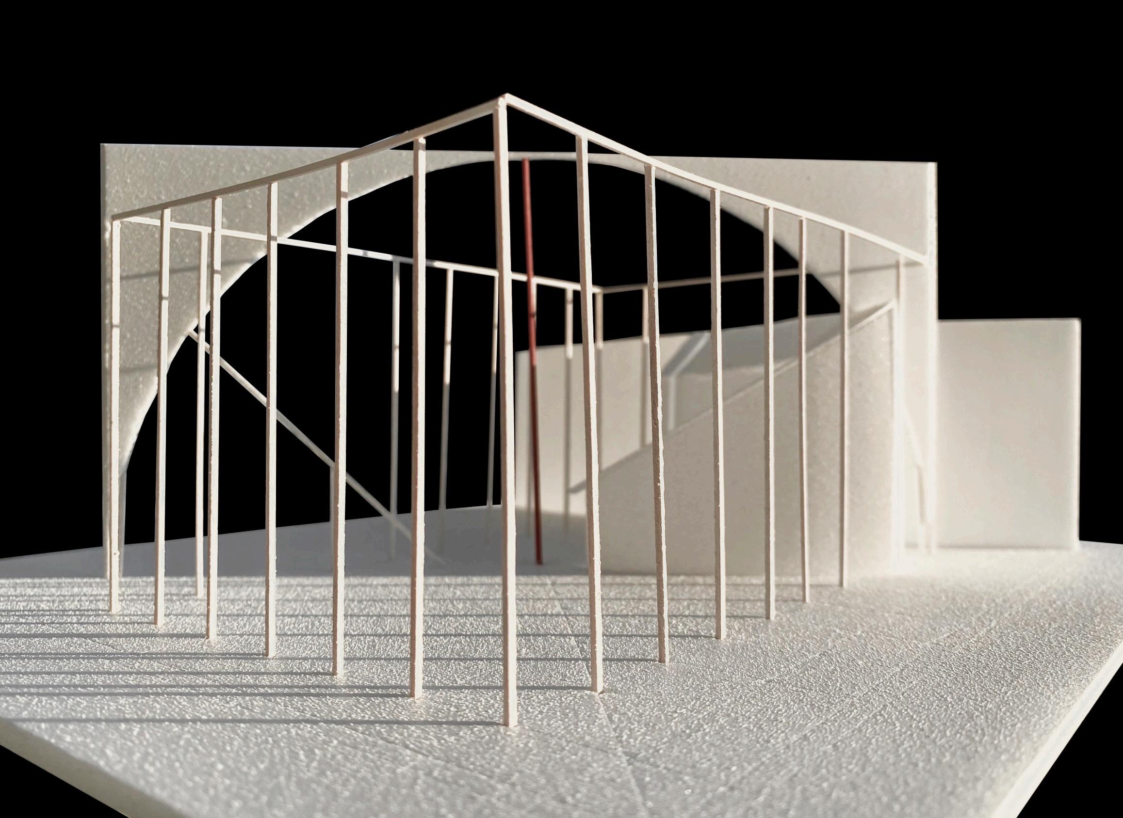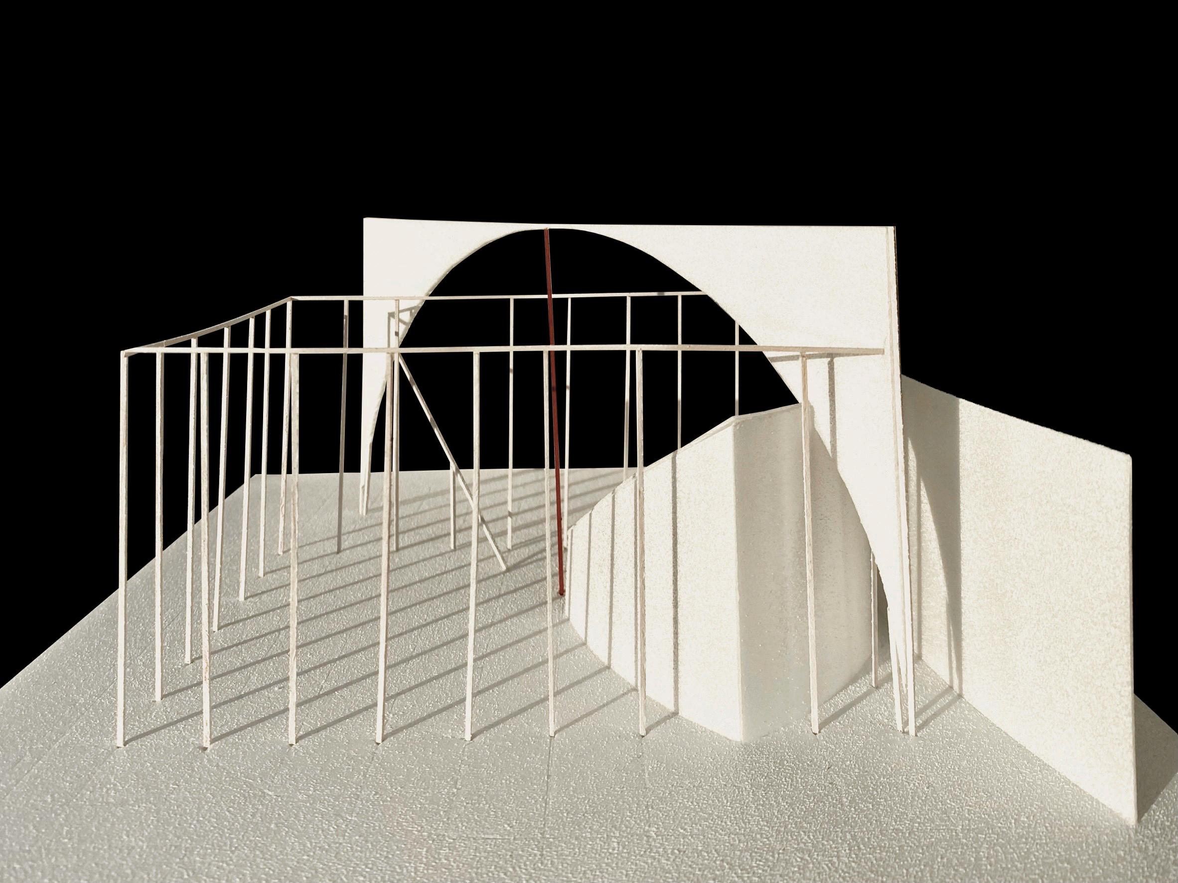This design was based on a video of an existing wooden frame that once existed in Tokyo Gaienmae, which was used in Ryoji Suzuki's "Absolute Site" (1987), as the only documentation of its existence, and was designed with the actual construction in mind. I selected this legendary work, which has formal similarities with the absolute site but is little known due to its brief exhibition only, as a stage to output my past research while exploring its possibilities in the modern age. (If you are interested, please click the QR code below right to watch the video.)