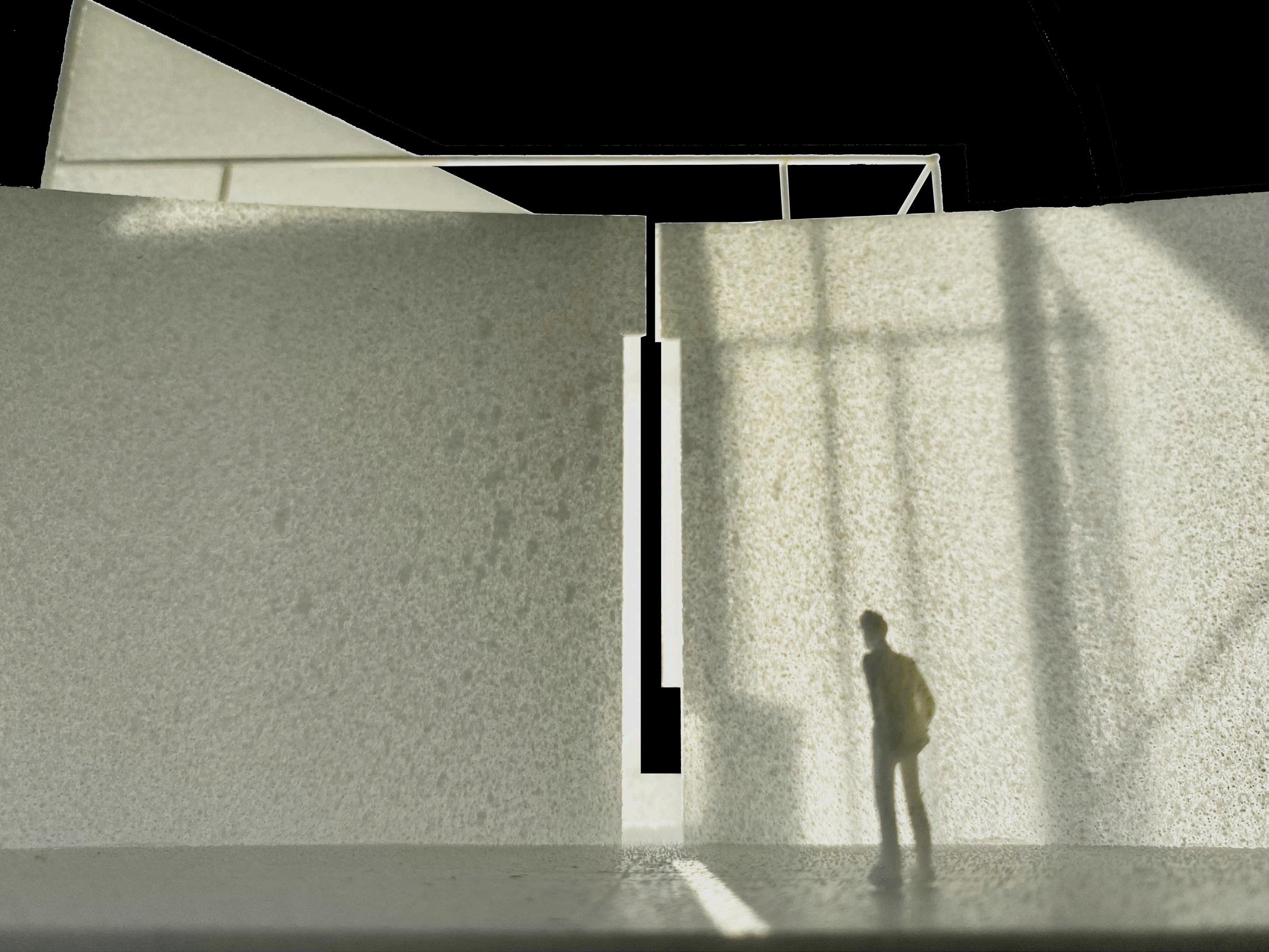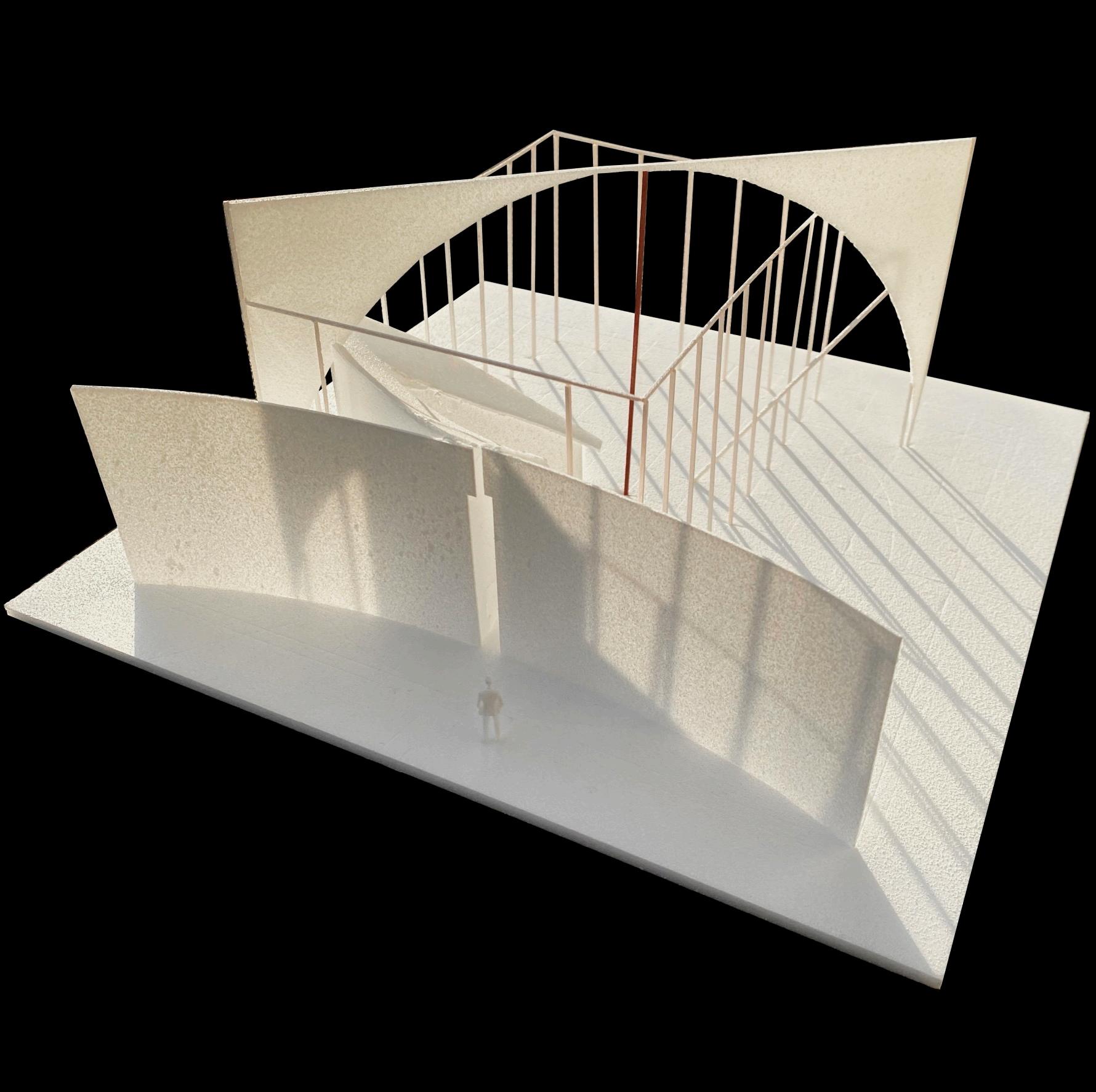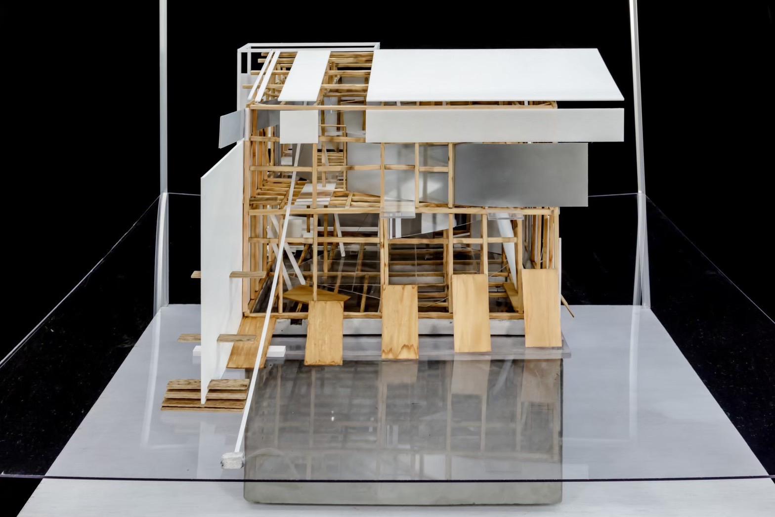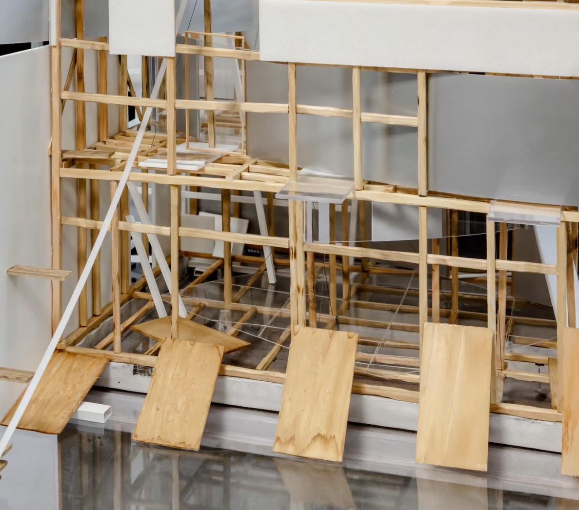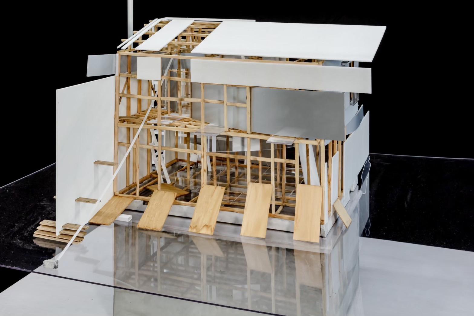 This design was based on a video of an existing wooden frame that once existed in Tokyo Gaienmae, which was used in Ryoji Suzuki's "Absolute Site" (1987), as the only documentation of its existence, and was designed with the actual construction in mind. I selected this legendary work, which has formal similarities with the absolute site but is little known due to its brief exhibition only, as a stage to output my past research while exploring its possibilities in the modern age. (If you are interested, please click the QR code below right to watch the video.)