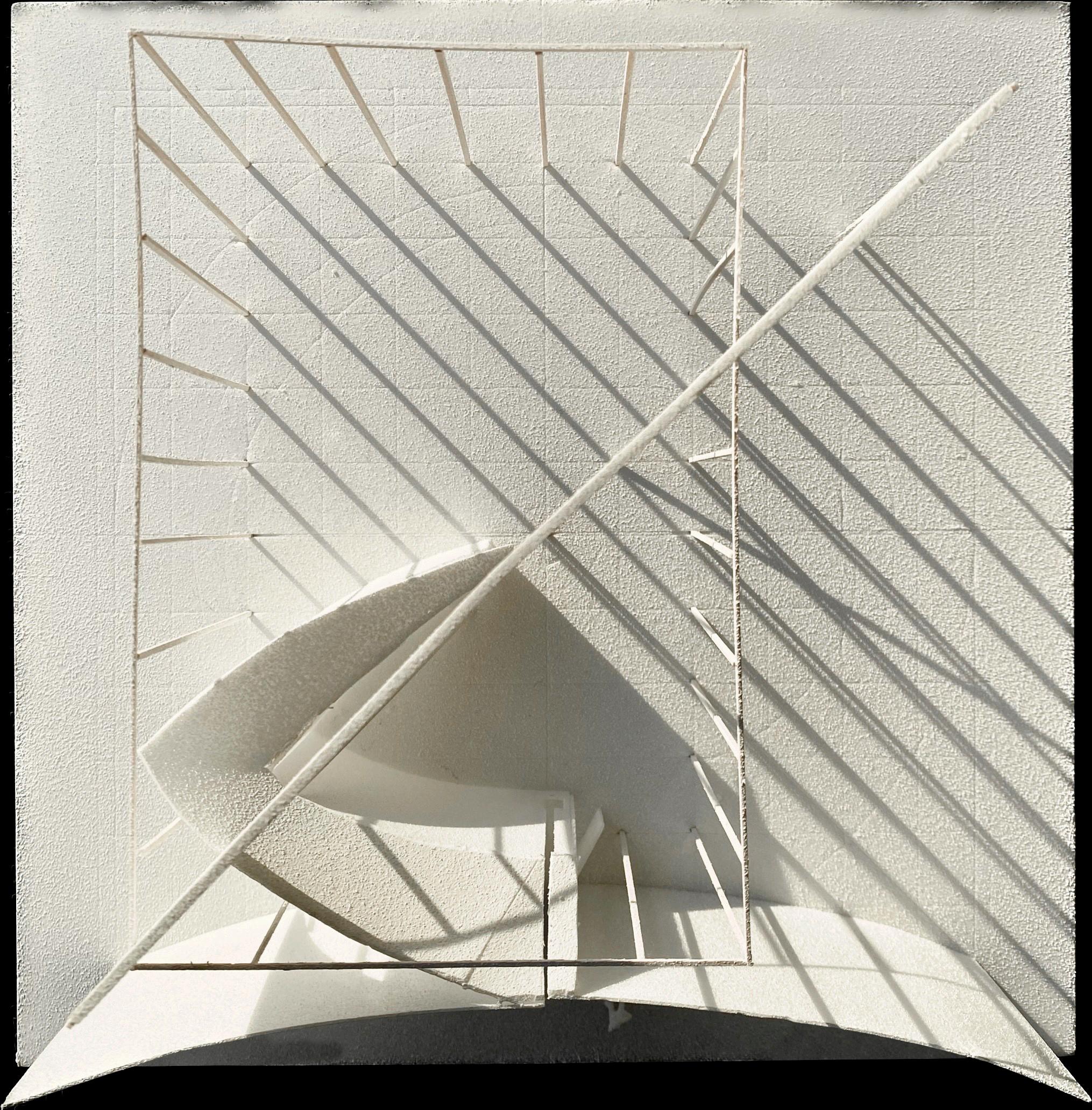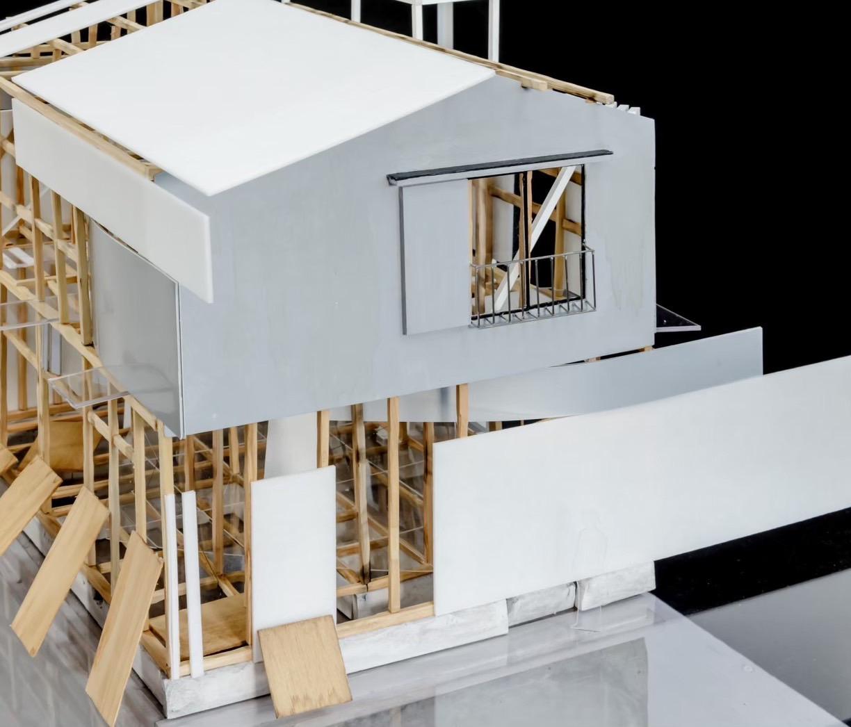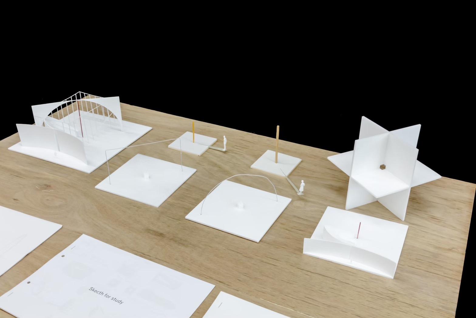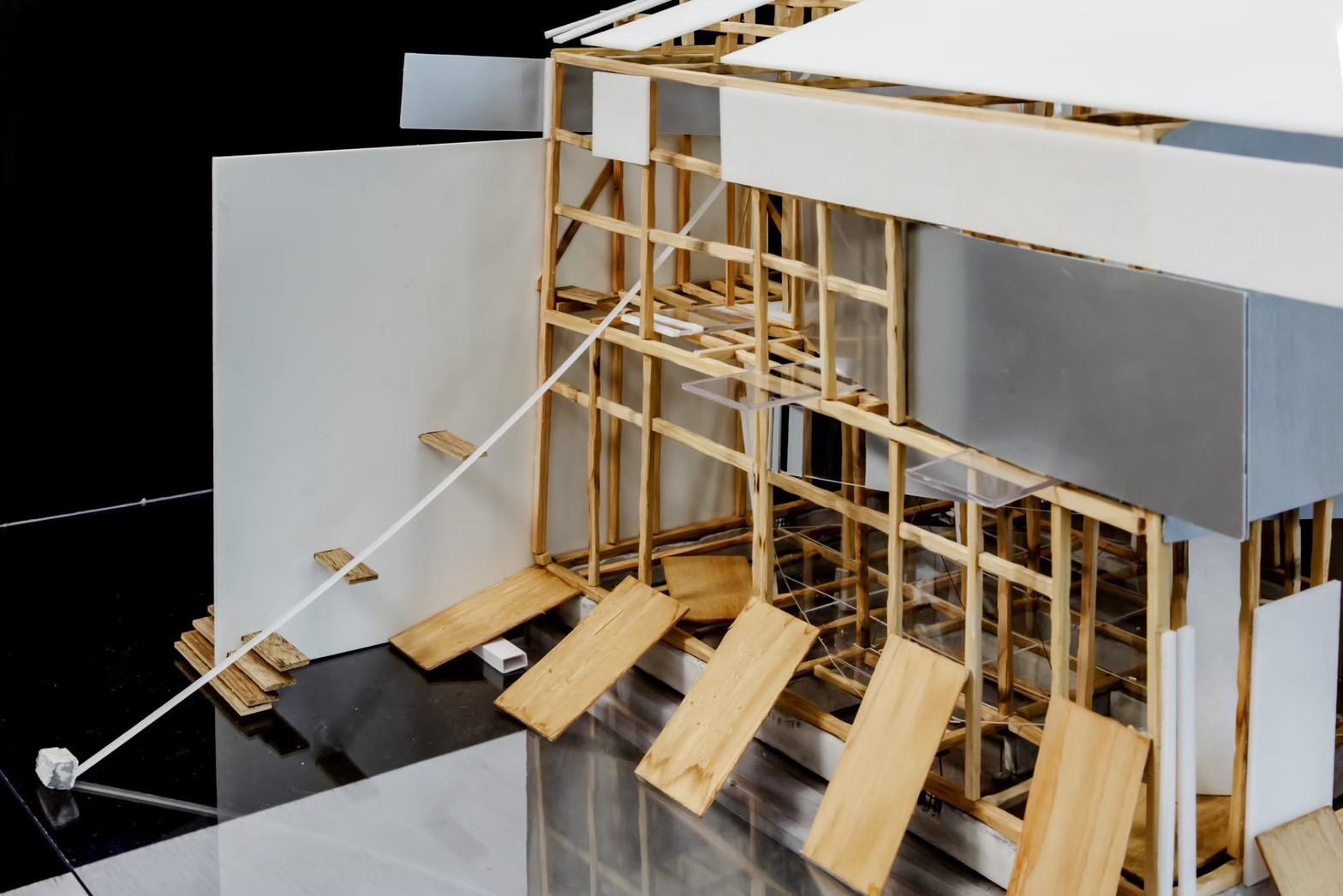 This design was based on a video of an existing wooden frame that once existed in Tokyo Gaienmae, which was used in Ryoji Suzuki's "Absolute Site" (1987), as the only documentation of its existence, and was designed with the actual construction in mind. I selected this legendary work, which has formal similarities with the absolute site but is little known due to its brief exhibition only, as a stage to output my past research while exploring its possibilities in the modern age. (If you are interested, please click the QR code below right to watch the video.)