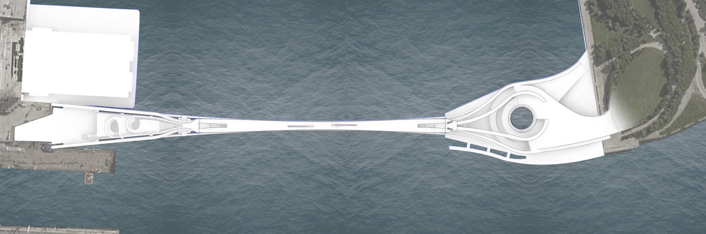 The piers of each side of the bridge are consists of the public spaces where people can perform and gather around. From where the paths starts, it is all for the circulations of the people without any disturbance. There are two ramps in the center of the bridge that connects the two decks together. The bicycle riders can move up to the top deck to walk and the pedestrians with the bicycles can also go down to the bottom deck.