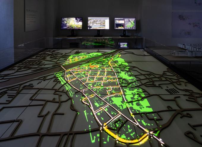 The projection mapping was adopted as a presentation tool for government officials, engineers, residents, NPOs, and others involved in each project to gather around and engage in discussions, using the projection mapping and displays.