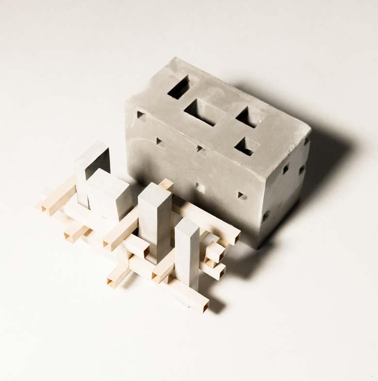 Carved Void is a conceptual sculptural model developed through an analysis of the Sunken Courtyard House (Yaodong) in China. Constructed from Rockite and wood, the project investigates the relationship between positive and negative space through mass and void. A dense, monolithic volume is carved by an intricate network of interwoven pathways that connect a series of openings, revealing moments of compression and release. These internal passages transform the seemingly heavy block into a spatial system defined by circulation, light, and threshold conditions.