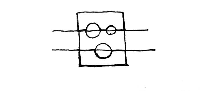 Horizontal: A single horizontal plane cuts across the sunken terrain, settling into the earth.
