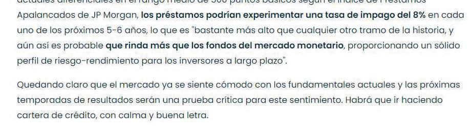 Quedando claro que el mercado ya se siente cómodo con los fundamentales actuales y las próximas temporadas de resultados serán una prueba crítica para este sentimiento. Habrá que ir haciendo cartera de crédito, con calma y buena letra.