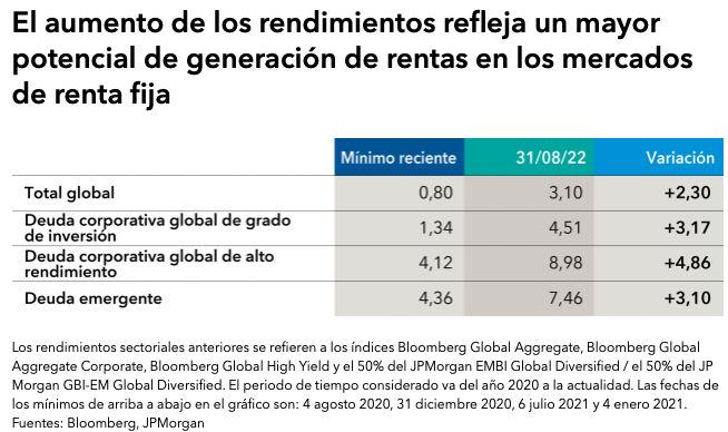 Según apunta Mike Gitlin, jefe de Renta Fija de Capital Group, la inversión en renta fija en un entorno de inflación elevada y subida de tipos de interés puede genera cierta inquietud, Sin embargo, los rendimientos actuales de partida ofrecen una vía de entrada atractiva a los inversores. El especialista da algunos ejemplos como es el caso de la deuda corporativa global de grado de inversión (BBB/Baa y superior) que actualmente ofrecen un rendimiento del 4,51%, superior al 4,12% que ofrecía la deuda global de alto rendimiento durante los mínimos registrados recientemente.