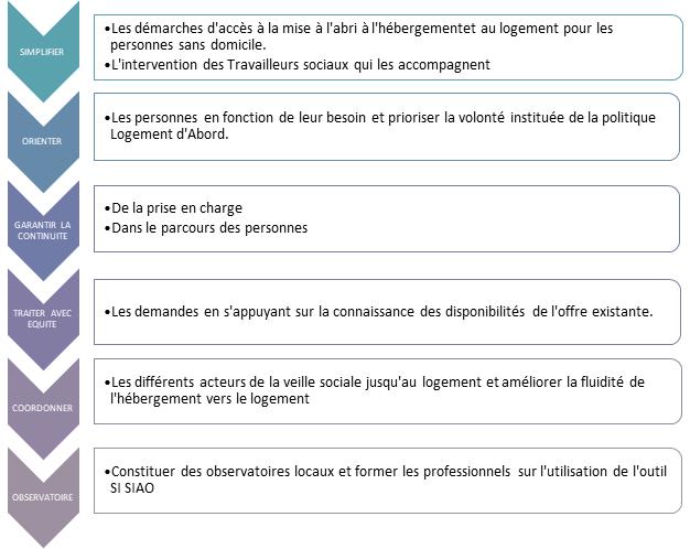 Centraliser les demandes d’hébergement et les offres d’hébergements des structures, Coordonner l’attribution de toutes les places d’hébergement d’urgence et d’insertion, Coordonner la fluidité des structures d’hébergement vers le logement autonome, Contribuer à l’observatoire local de l’hébergement d’urgence et du logement d’insertion.