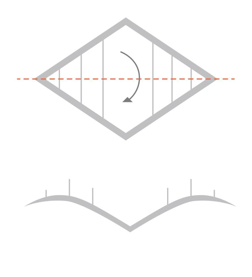 起初嘗試從大自然的姿態進行 發想,最後以紙張彎折所產生 的自然張力作為造型框架,讓 線材不只具有支撐功能,也能 成為造型的一部分。