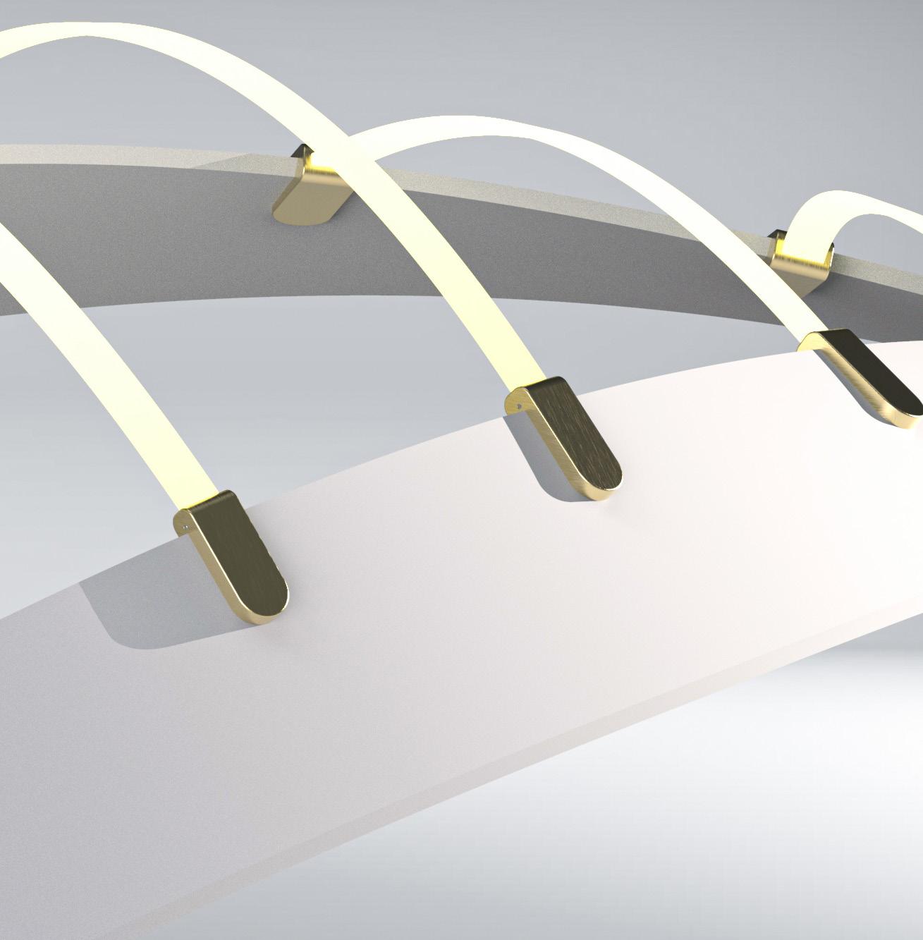 透過燈管延展所產生的張力,作為支撐結 構之一,再加上本身透明的材質,讓燈具 亮起時能產生細緻且宛如流光的效果 。